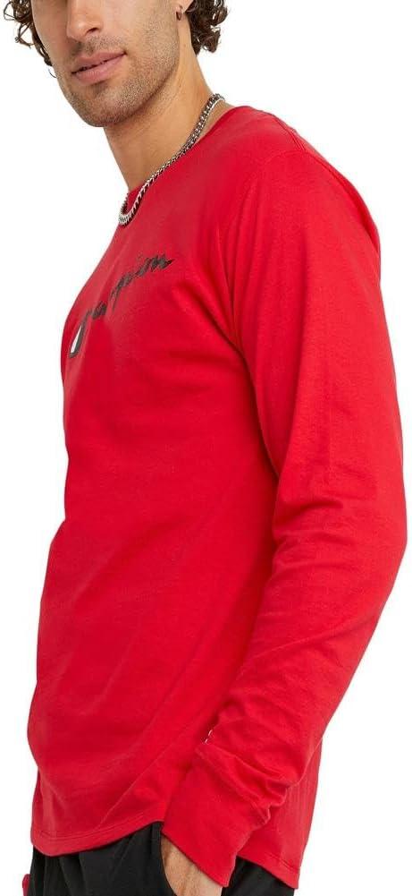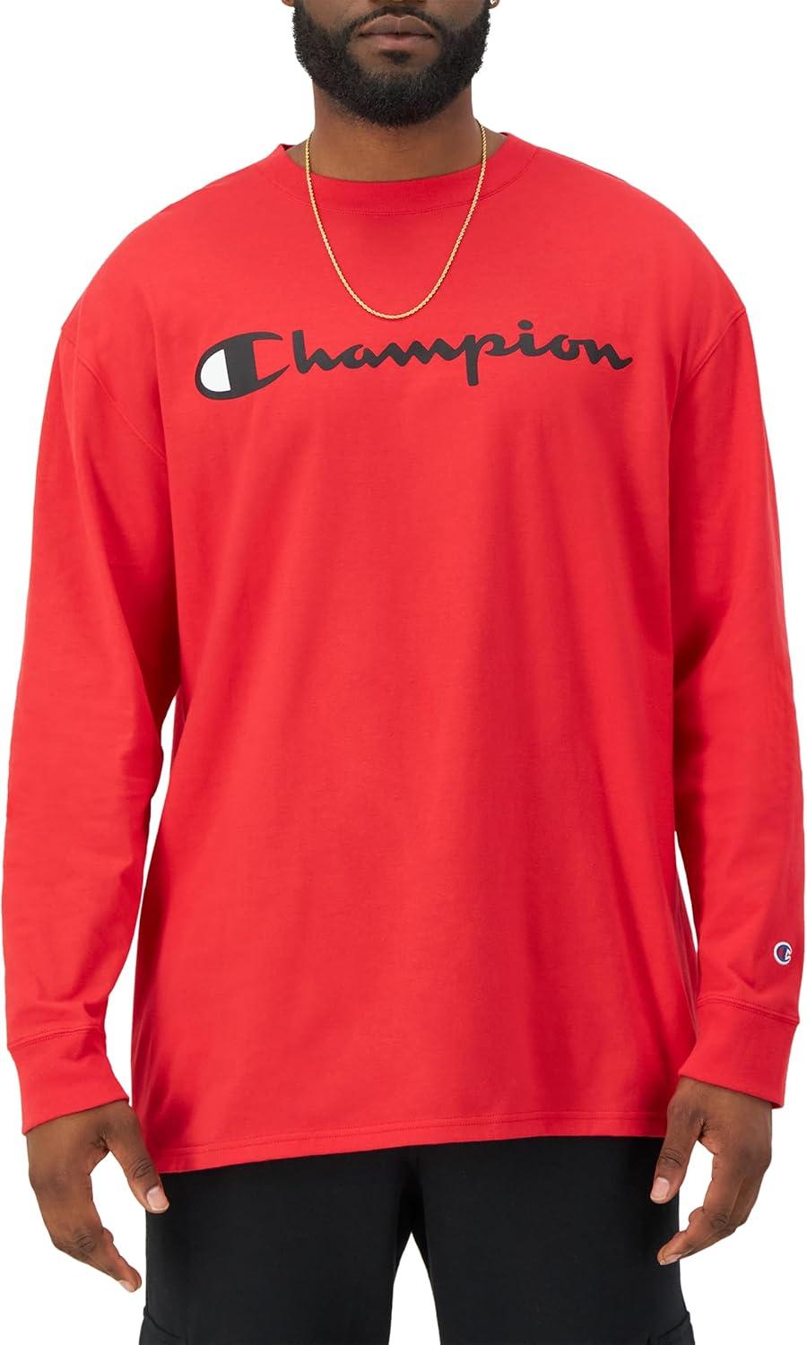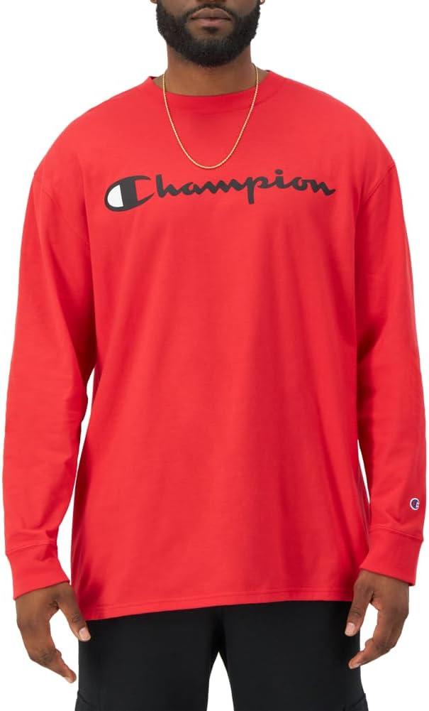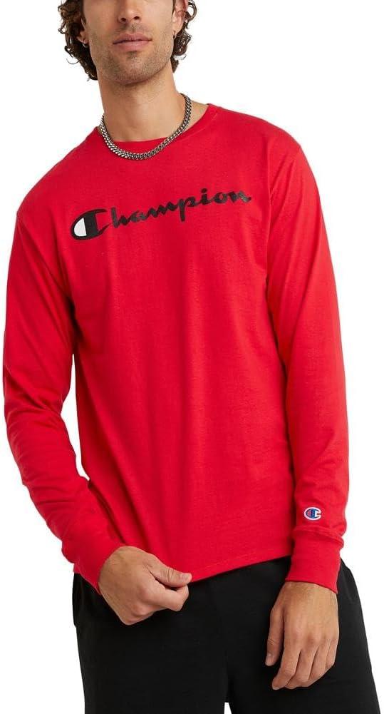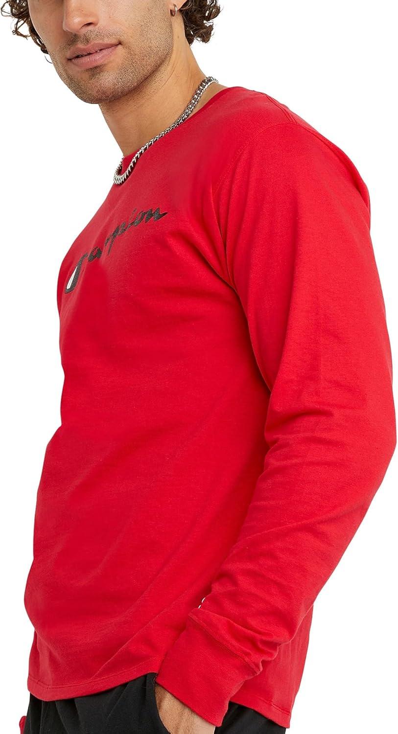 Champion Men's Long Sleeve T-shirt, Classic T-shirt for Men (Reg. Or Big & Tall)(Scarlet - Classic Script Logo)