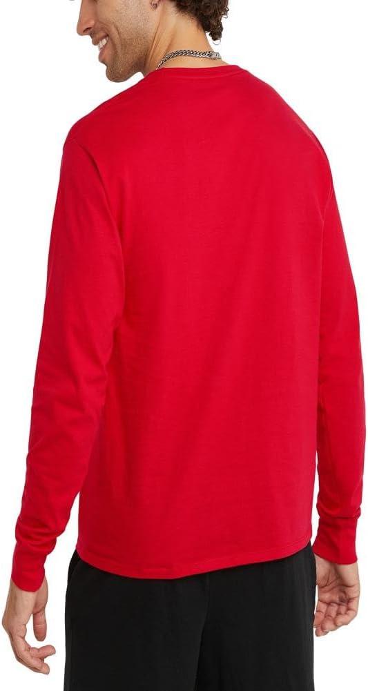 Champion Men’s Long Sleeve T-shirt, Classic T-shirt for Men (Reg. Or Big & Tall)(Scarlet)