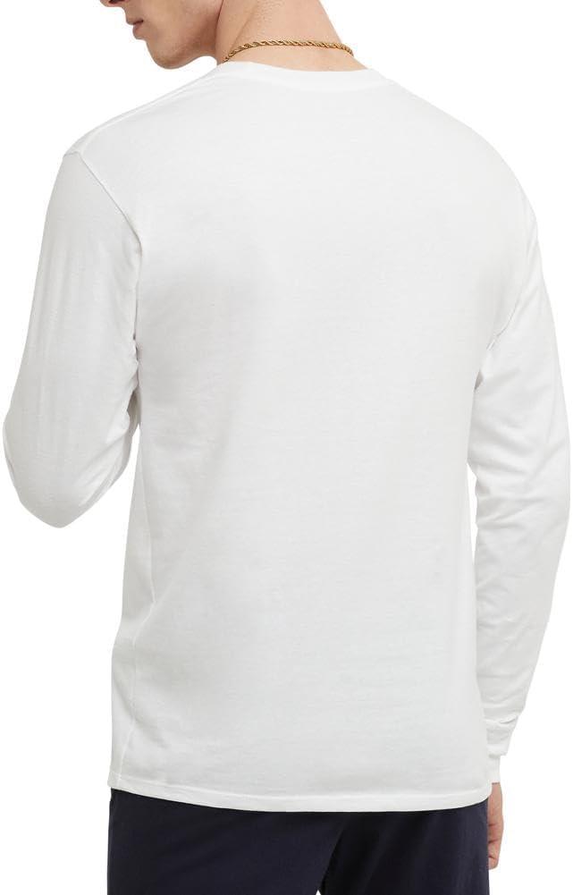 Champion Men's Long Sleeve T-shirt, Classic T-shirt for Men (Reg. Or Big & Tall)(White)