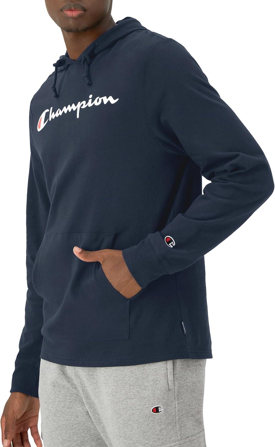 imageChampion Mens Long Sleeve Tshirt Hoodie Retired ColorsNavy  Classic Script Logo