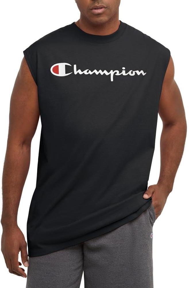 Champion Men's Muscle Tank, Classic Graphic Muscle Tee, Sleeveless T-shirt for Men (Reg. Or Big & Tall)(Black - Classic Script Logo)