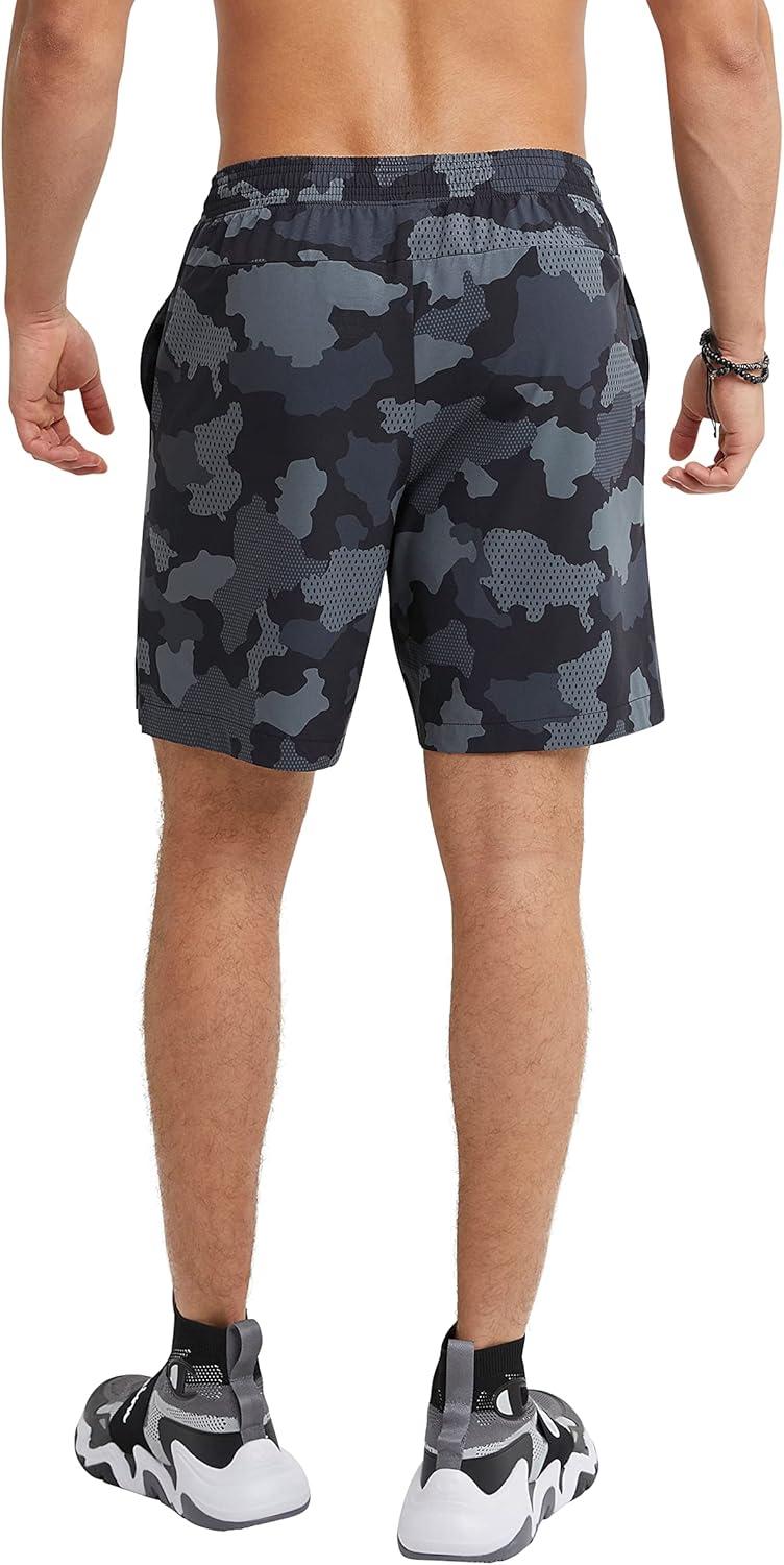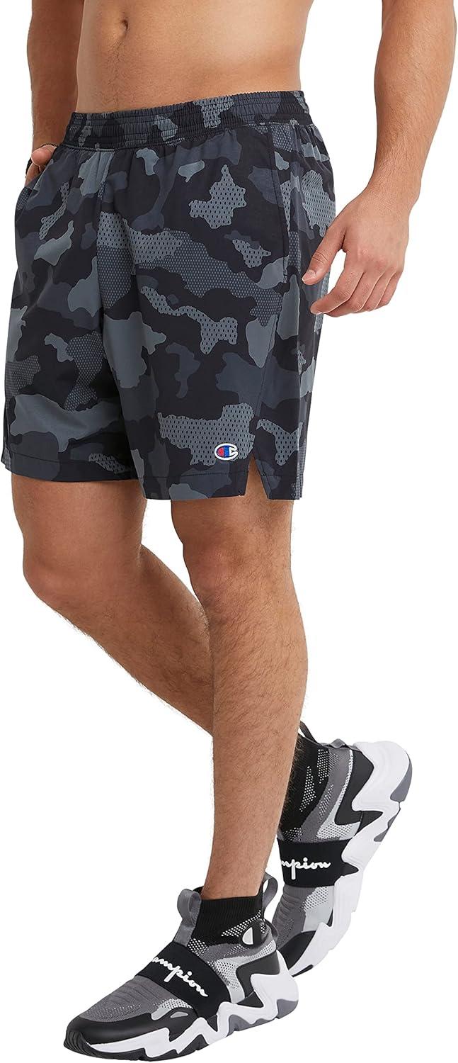 Champion Men’s MVP Moisture Wicking Gym Shorts, 7″ & 9″(Mesh Camo Neutral C Patch Logo)
