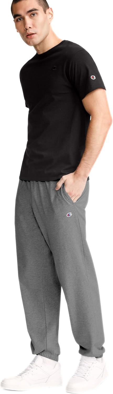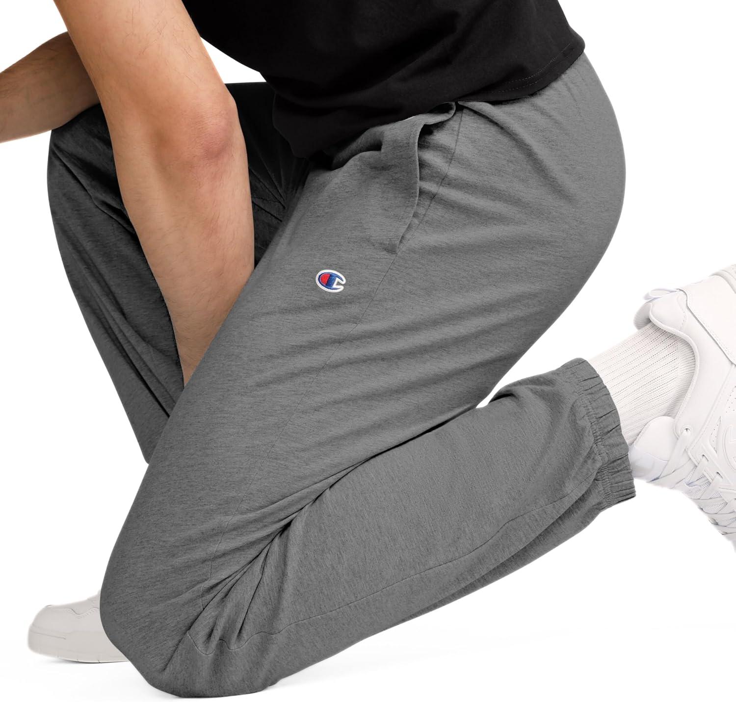 Champion Men’s Pants, Everyday Cotton, Lightweight Lounge, Knit Pants for Men (Reg. Or Big & Tall)(Granite Heather – C Patch Logo)