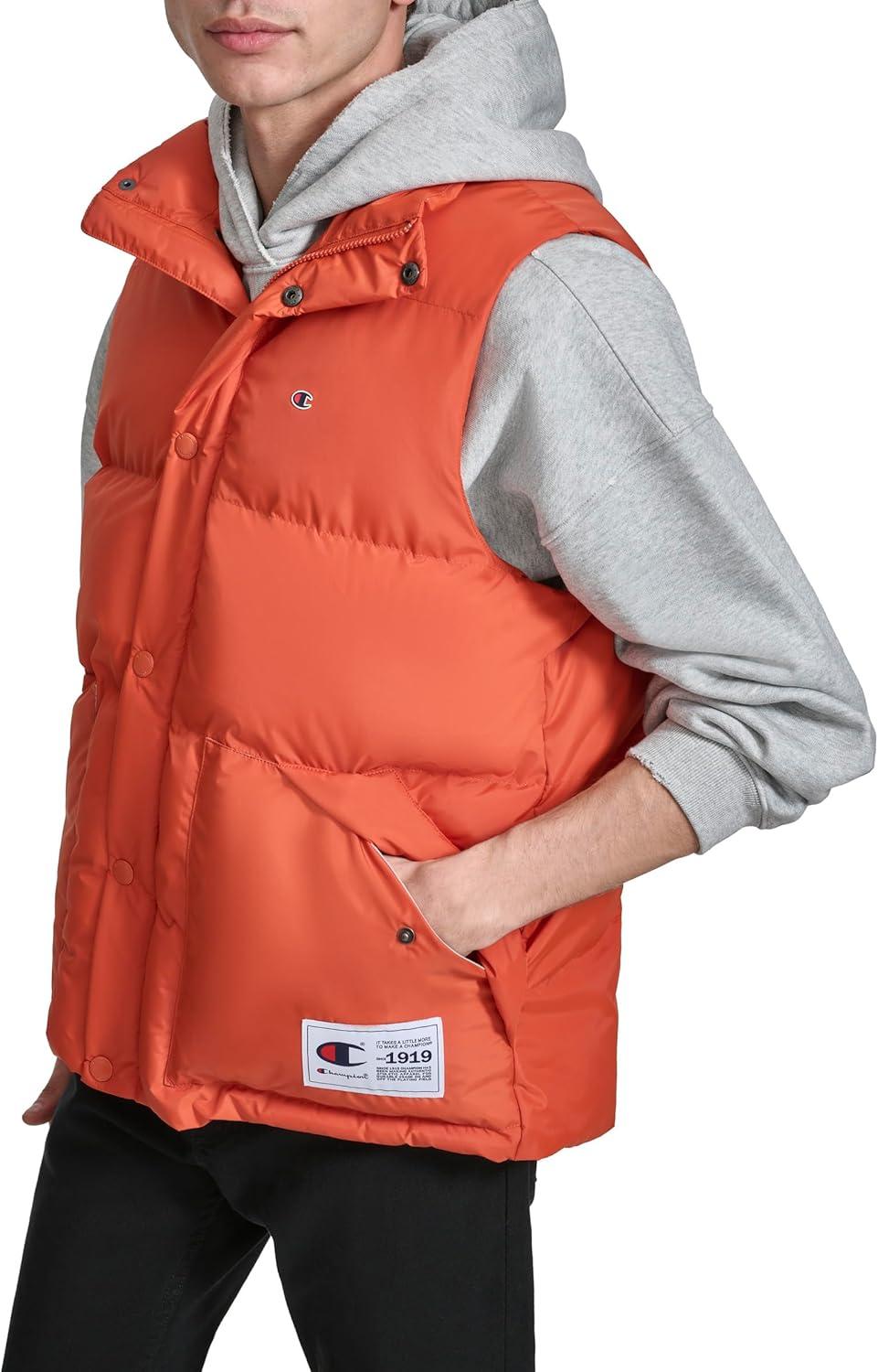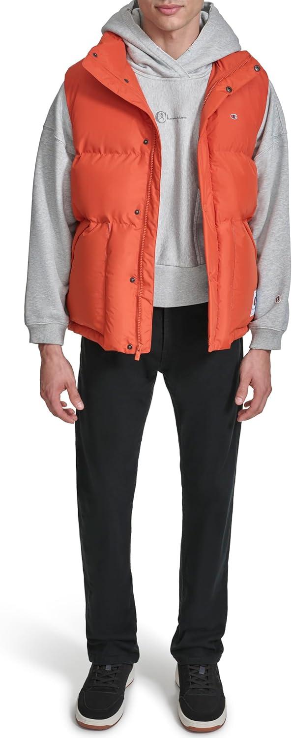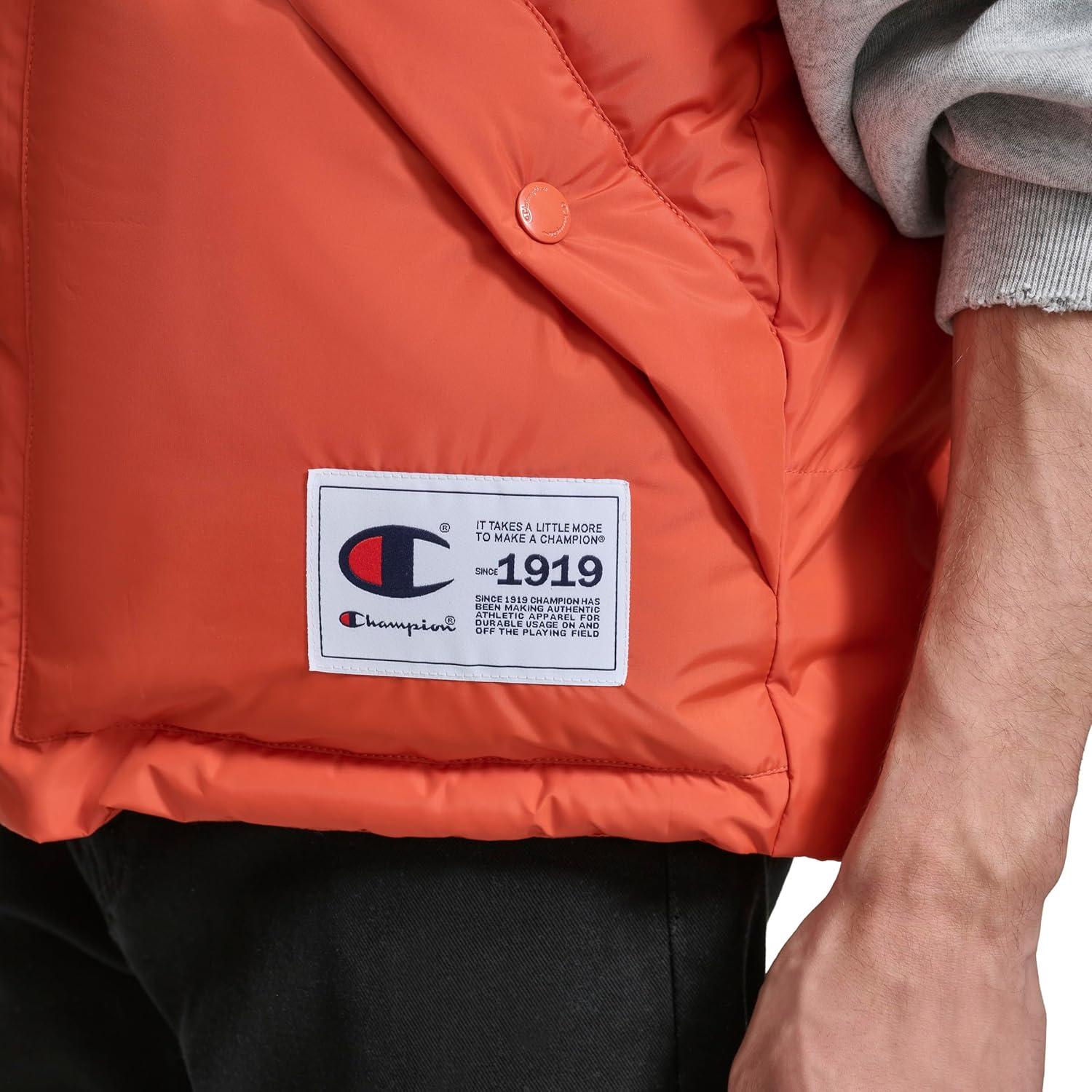 Embrace warmth and style with the Champion quilted puffer vest, featuring two lower pockets for convenient storage and a sleek Champion logo at the left chest. This vest combines classic design with functional details for a standout, versatile piece.