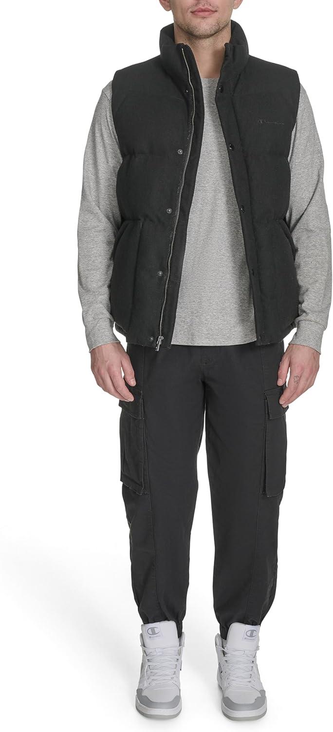Embrace warmth and style with the Champion quilted puffer vest, featuring two lower pockets for convenient storage and a sleek Champion logo at the left chest. This vest combines classic design with functional details for a standout, versatile piece.