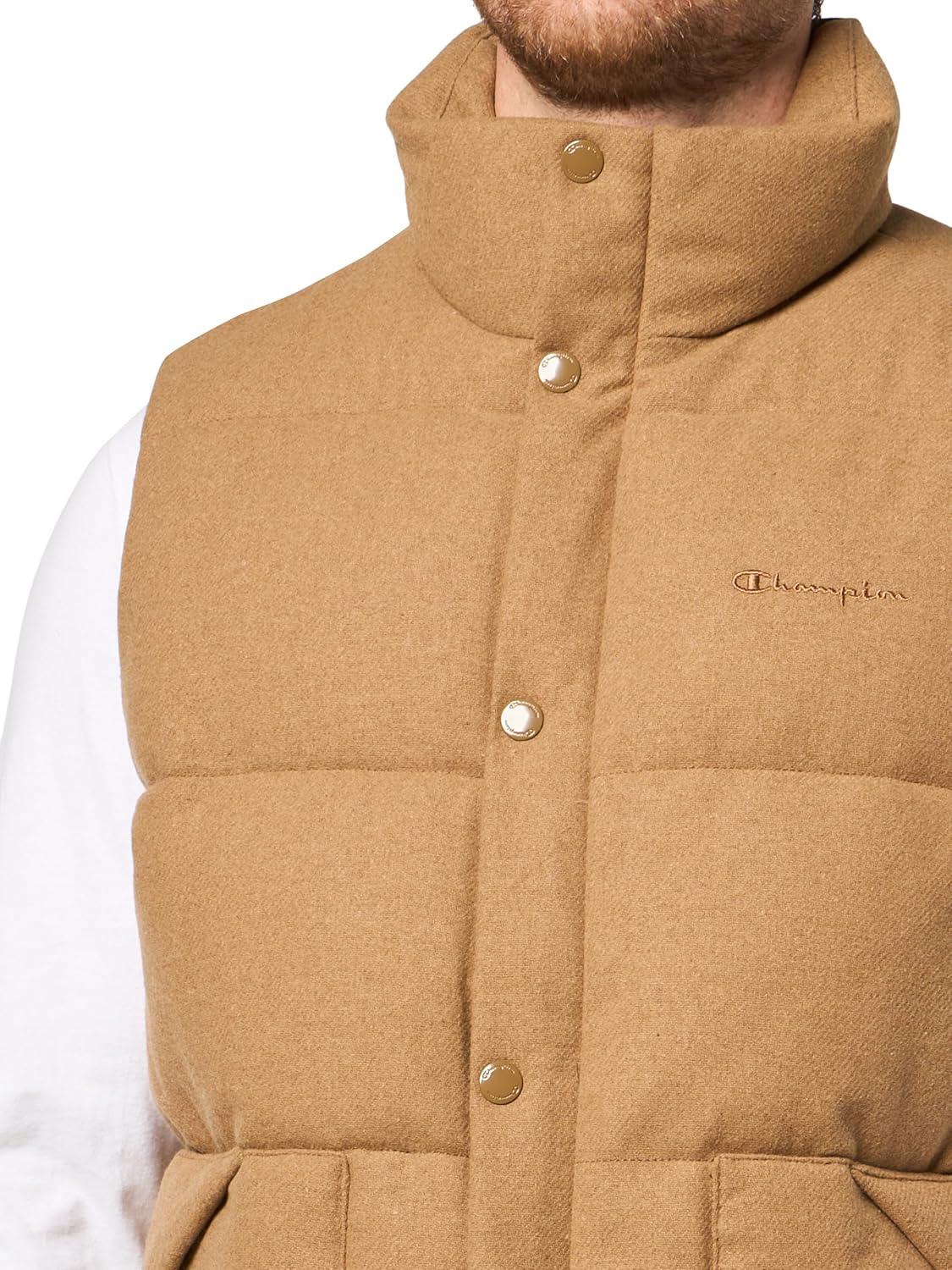 Champion mens Puffer Vest With Name Logo(Camel Wool Blend)