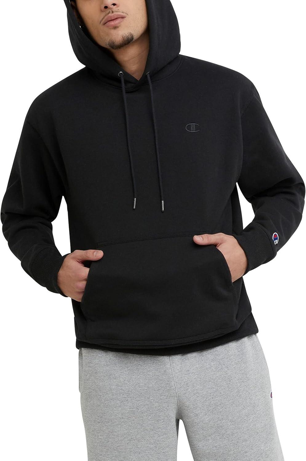 Champion Men's Pullover Fleece Hoodie, Midweight, C Logo (Reg. Or Big & Tall)(Black C Logo)