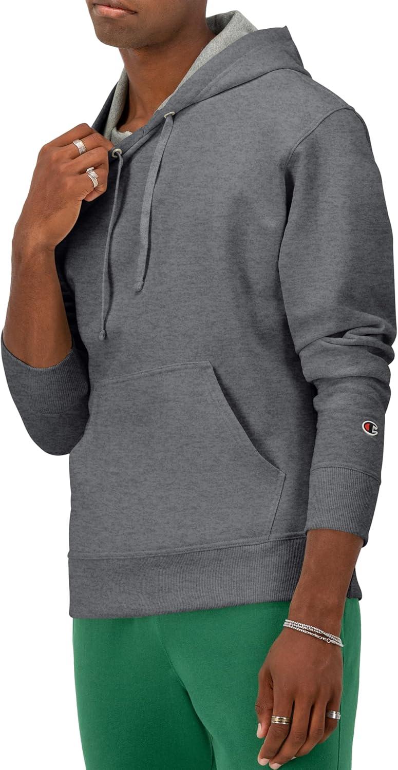 Champion Men's Pullover Fleece Hoodie, Midweight, C Logo (Reg. Or Big & Tall)(Granite Heather)