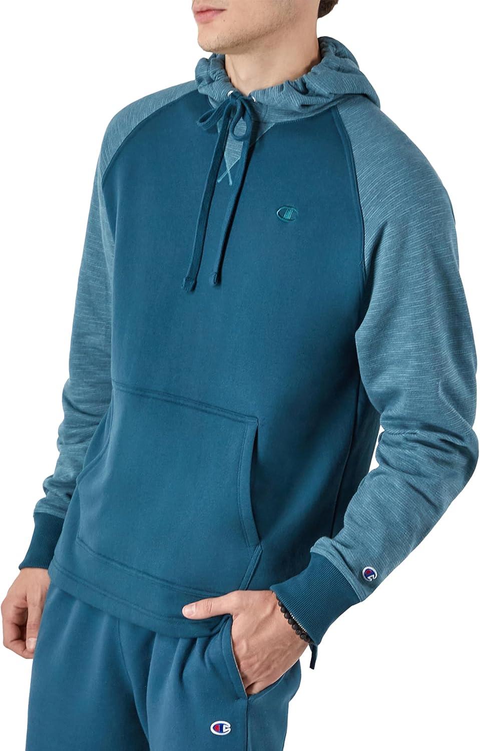 Champion Men's Pullover Fleece Hoodie, Midweight, C Logo (Reg. Or Big & Tall)(Metallic Teal C Logo)