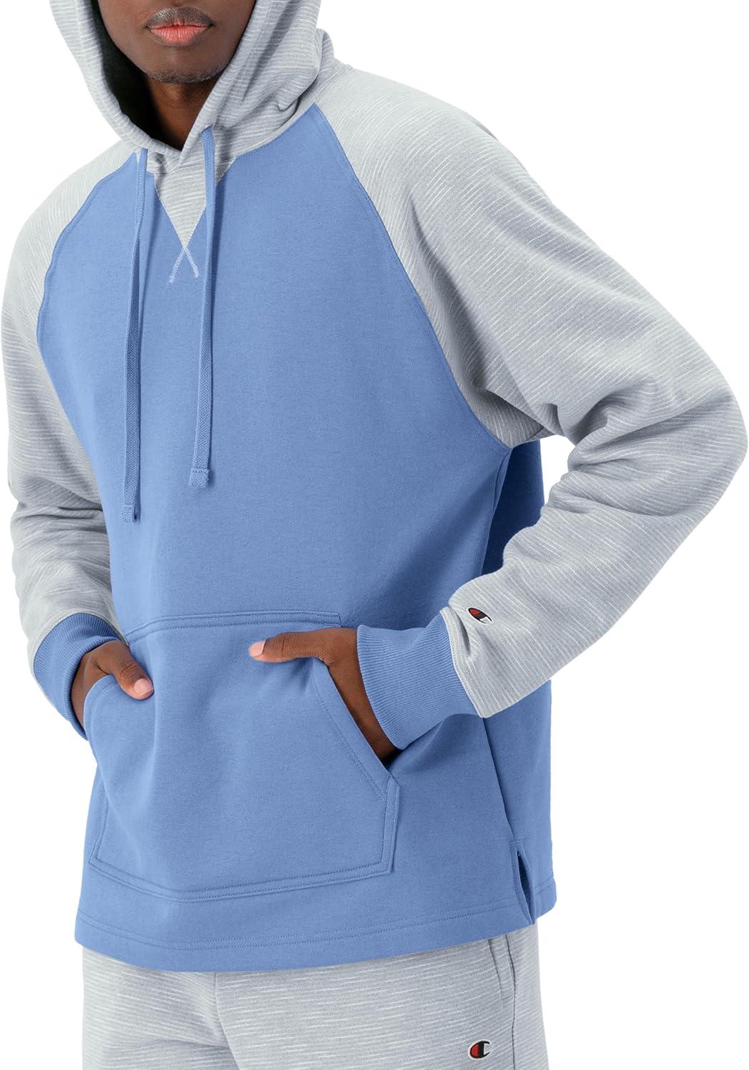 Champion Men's Pullover Fleece Hoodie, Midweight, C Logo (Reg. Or Big & Tall)(Plaster Blue/Natural/Plaster Blue)