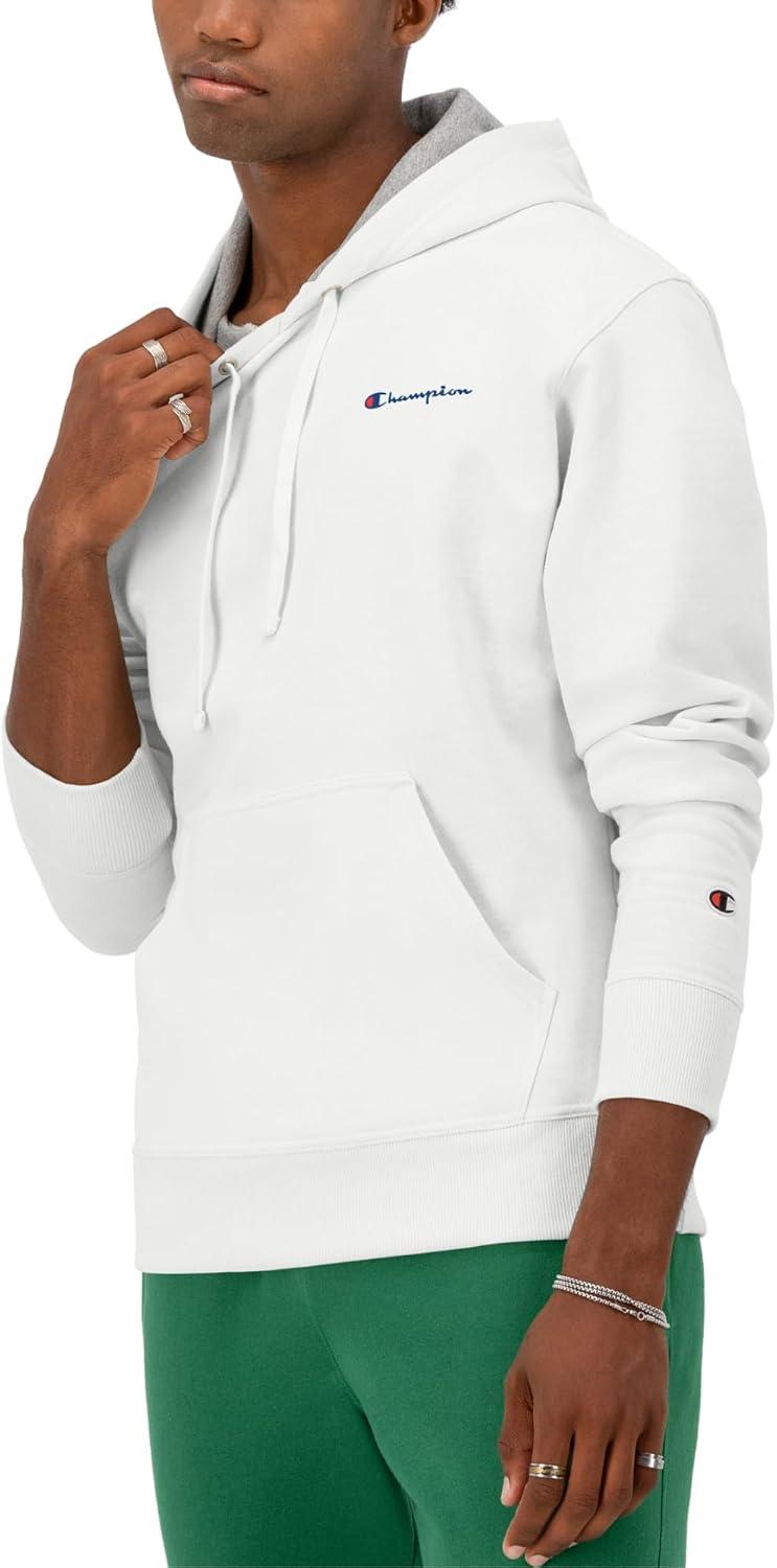 Champion Men's Pullover Fleece Hoodie, Standard Fit, Midweight, C Logo, Available in Regular and Big & Tall(White - Small Script Logo)