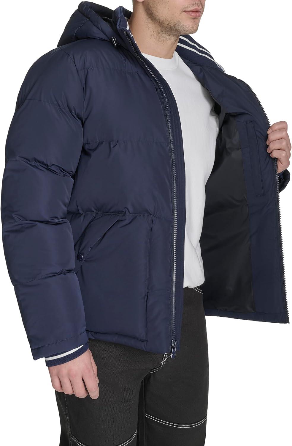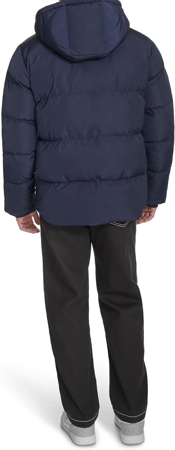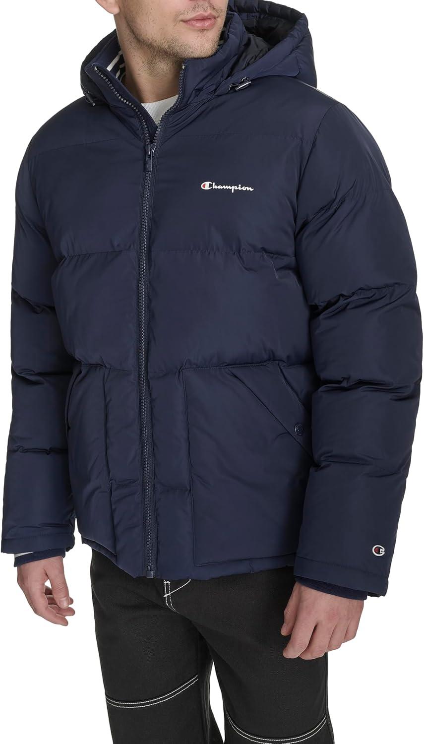 Champion mens Quilted Full-zip Hooded Puffer Jacket(Peacoat Patch Pocket)