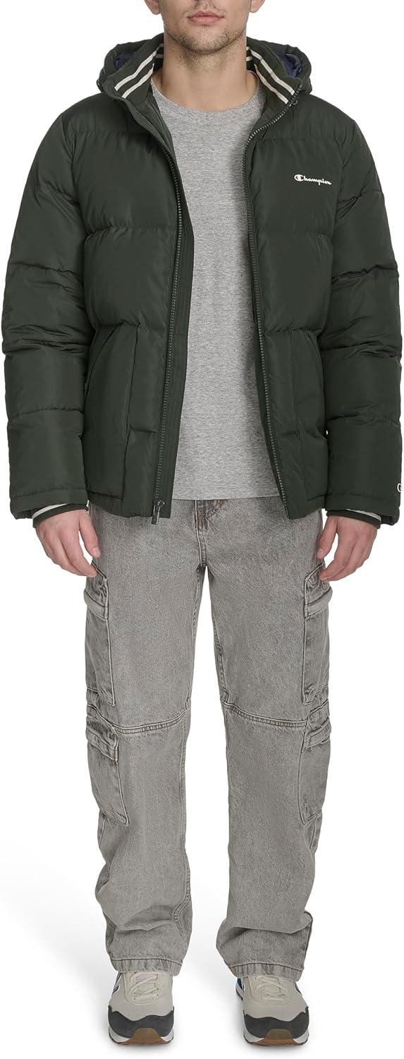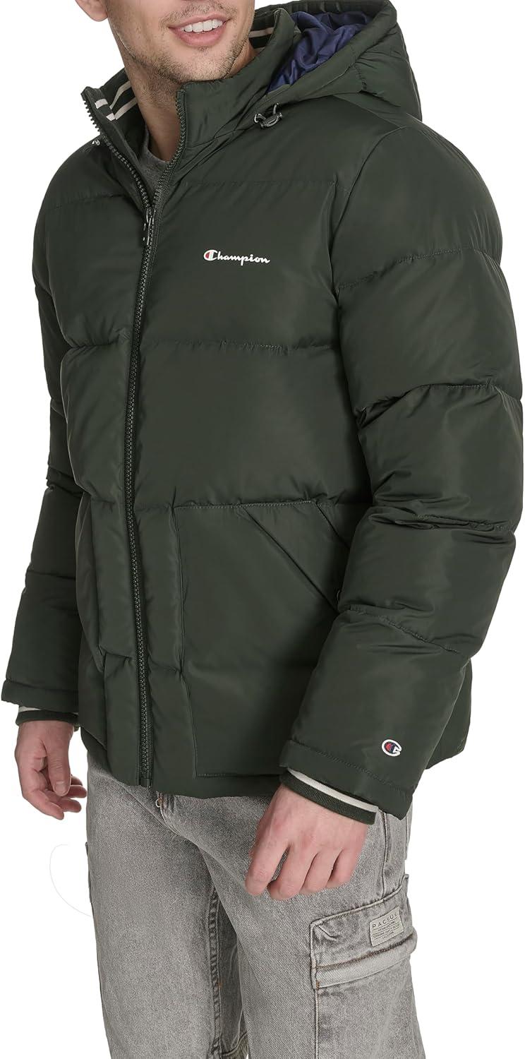 Champion mens Quilted Full-zip Hooded Puffer Jacket(Rain Forest)
