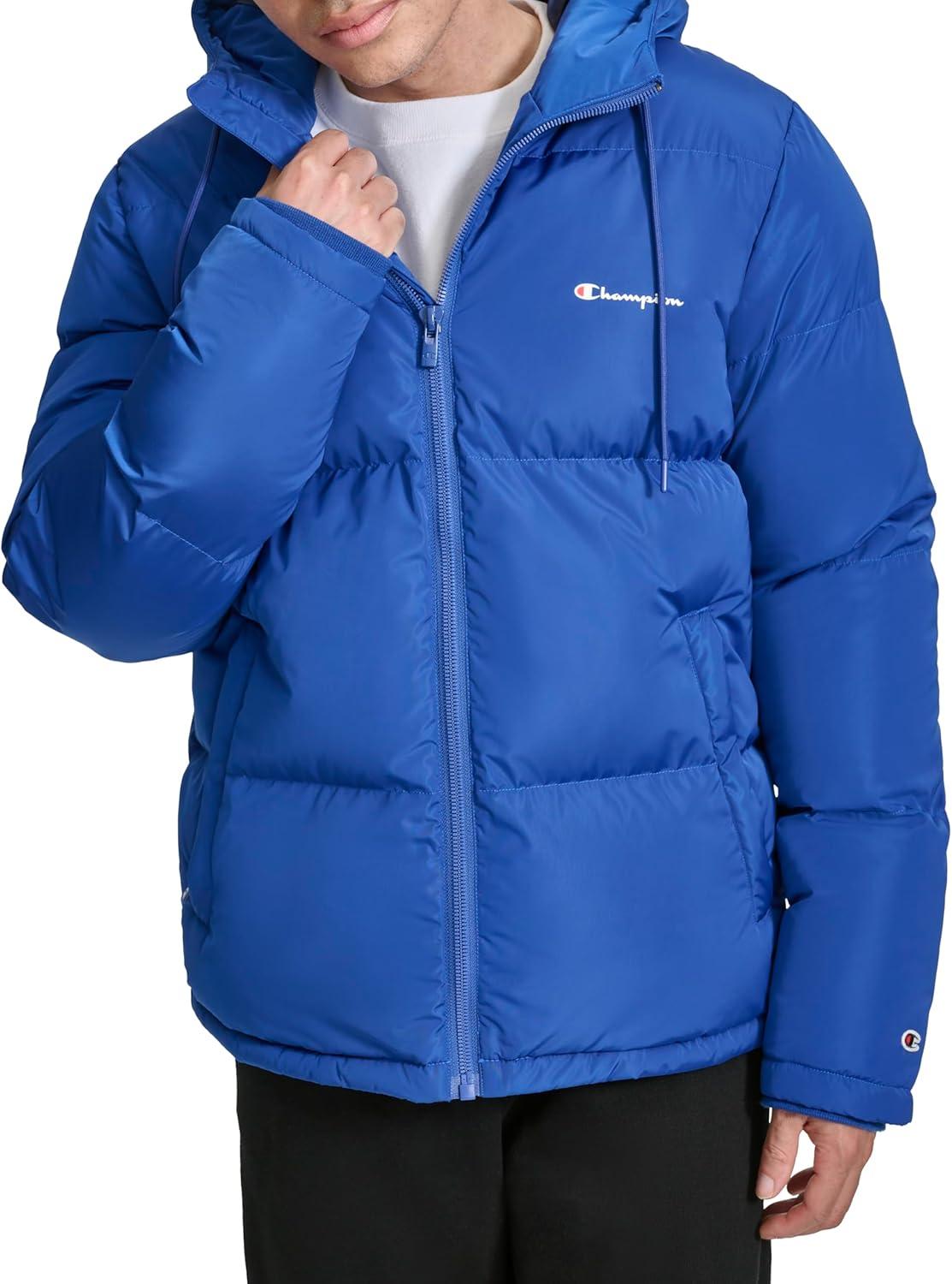 Champion mens Quilted Full-zip Hooded Puffer Jacket(Spruce Patch Pocket)
