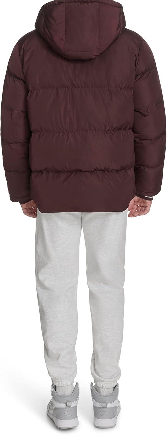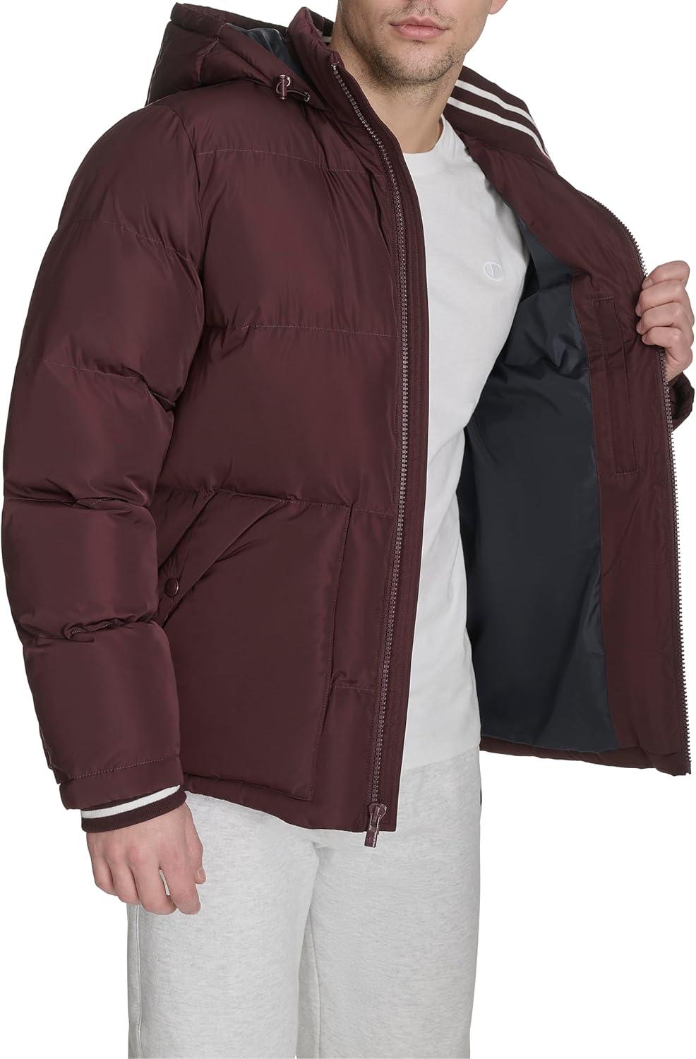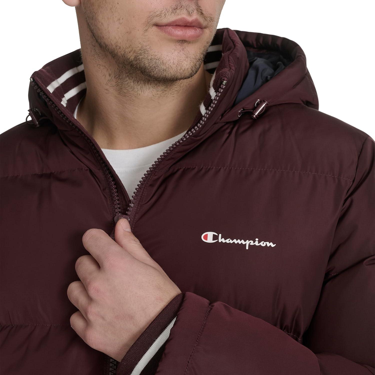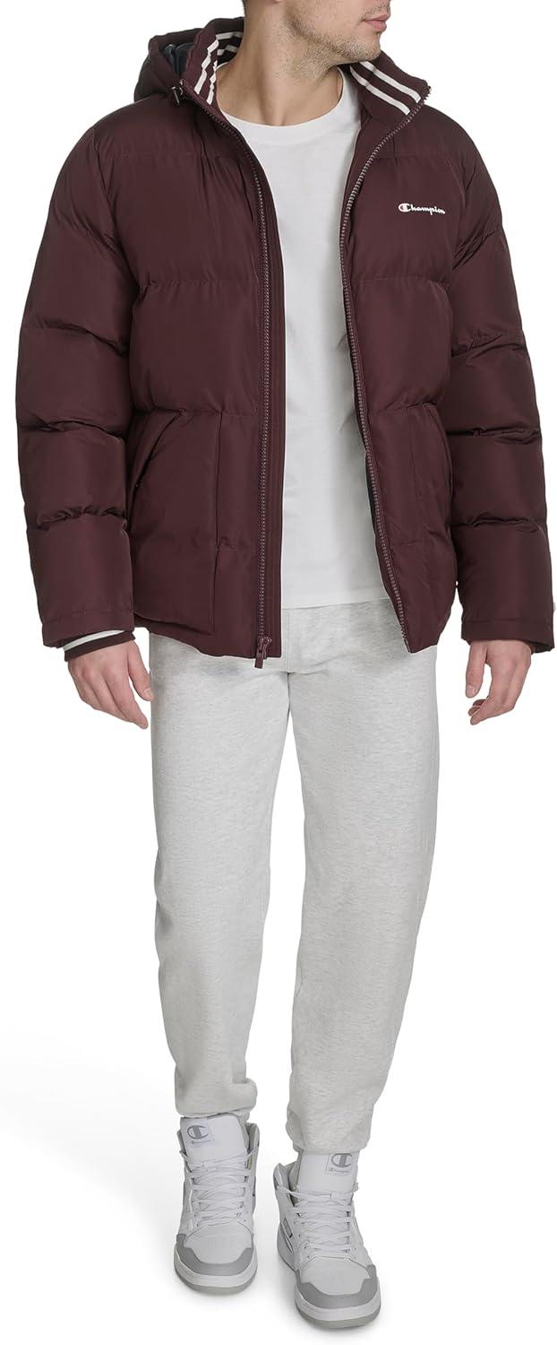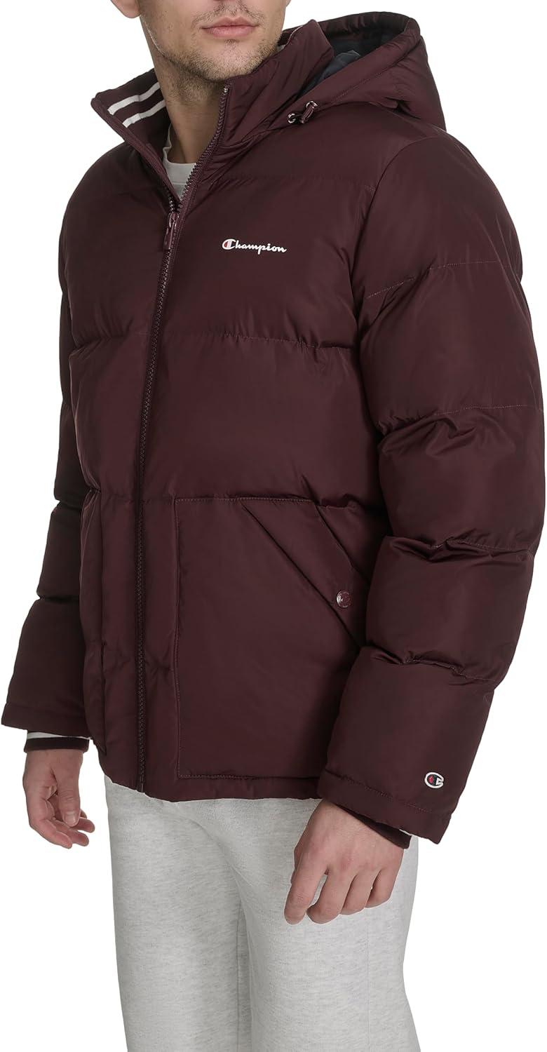 Champion mens Quilted Full-zip Hooded Puffer Jacket(Wine Patch Pocket)