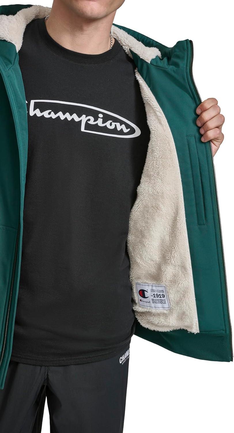 Stay ahead of the game with the Champion sport shell hoody bomber, featuring a sleek exterior and a cozy interior sherpa lining. This dynamic piece offers unparalleled warmth and modern style, making it your ultimate choice for both performance and fashion.