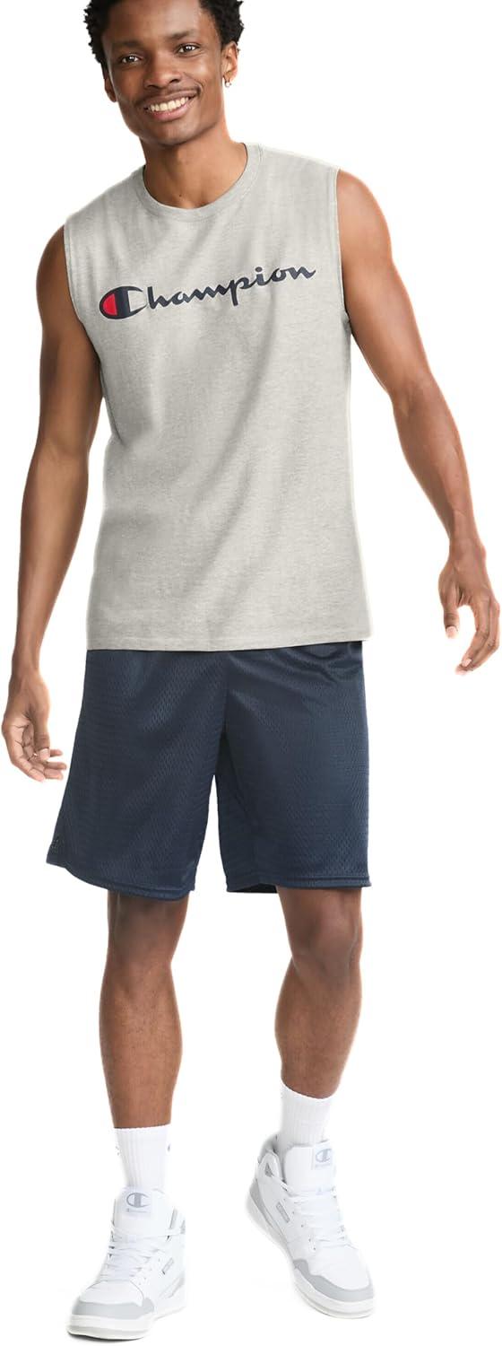 Champion Men’s Shorts, Men’s Mesh Gym Shorts, Lightweight Athletic Shorts (Reg. Or Big & Tall)(Granite Heather C Patch Logo)
