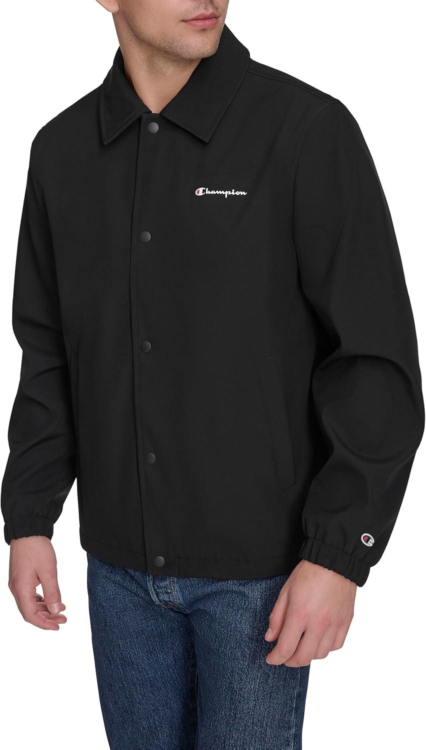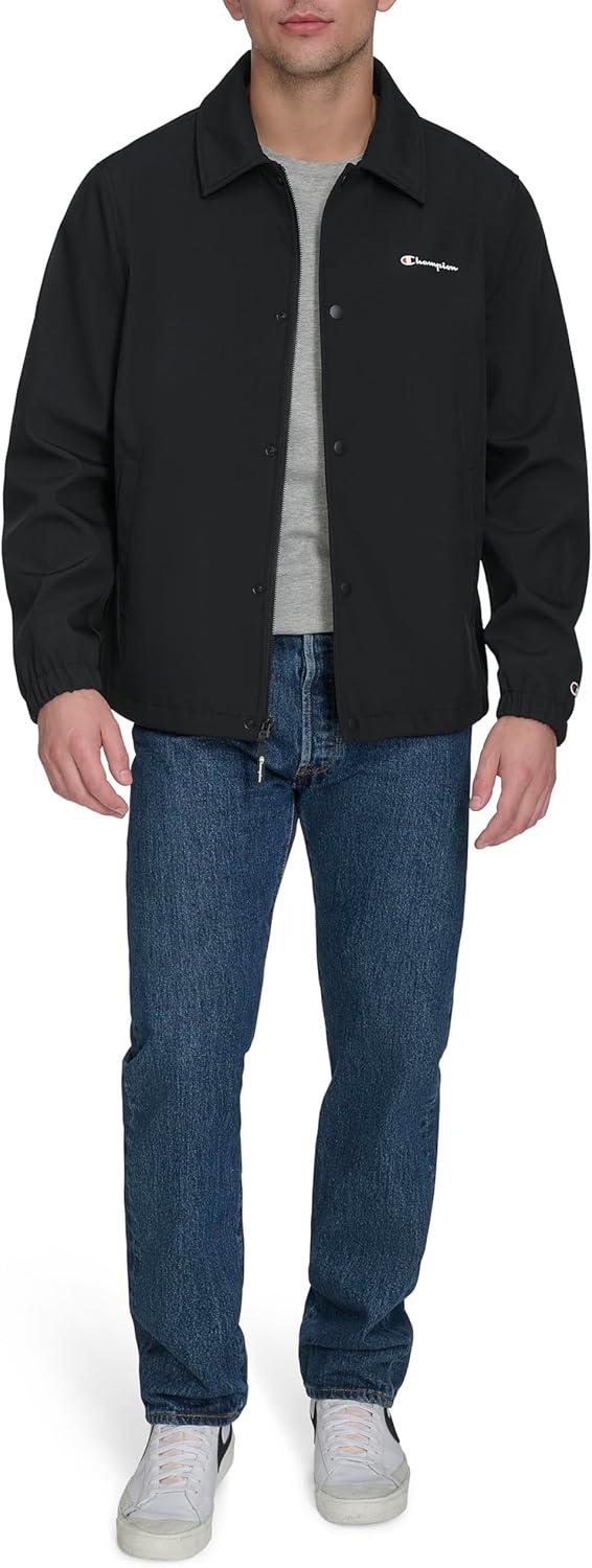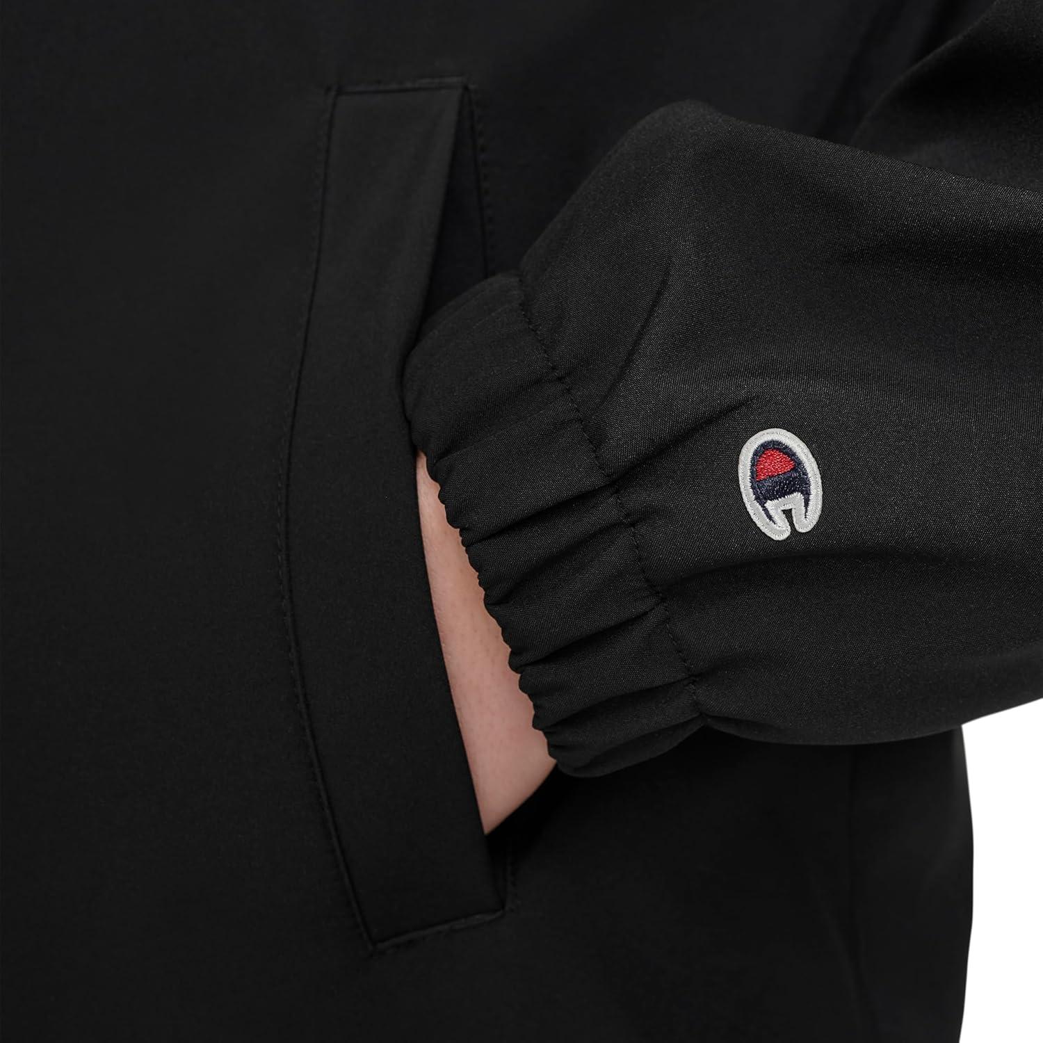 Practical Pockets: Equipped with two lower welt pockets to securely store your essentials. Snap-Zipper Closure: Features a center front snap zipper placket closure for easy wear and adjustable fit. Durable Softshell Fabric: Made with a comfortable, weather-resistant softshell material for lightweight protection and flexibility. Laydown Collar: Classic laydown collar design for added style and comfort. Iconic Branding: Champion script logo at the chest and signature logo at the cuff for a bold, sporty look.