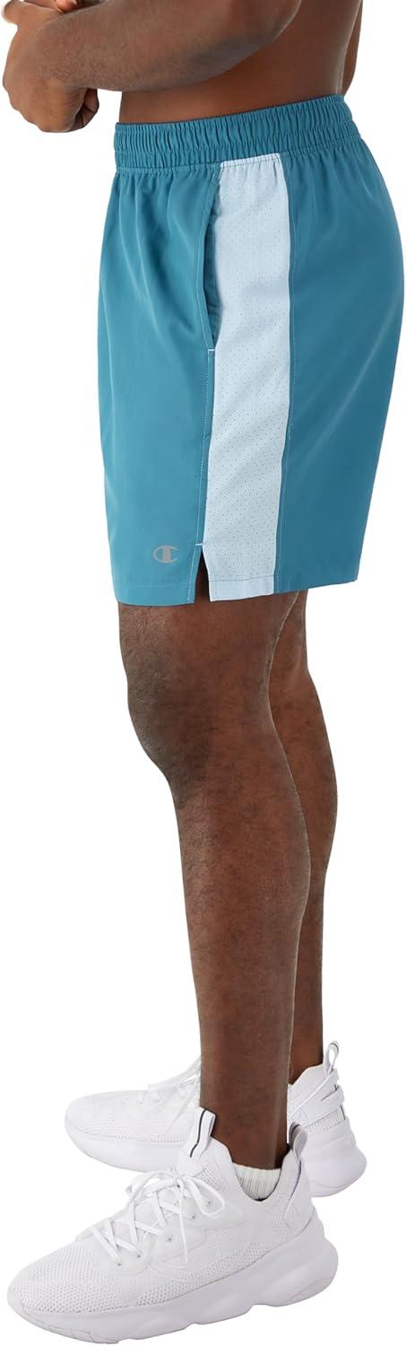 When you need super light, super easy, high performance gym shorts, Champion's® unlined athletic shorts are a smart choice. Even during a sweaty workout or an intense pickup game, these woven training shorts wick moisture away from skin with Double Dry™ technology so you stay cooler and drier. Their mid-thigh length with a 7″ Inseam makes them an ultra-versatile silhouette, combining the best of short running shorts and long basketball shorts. Even better, they have airy mesh inset panels at the sides for extra ventilation, and side vents for maximum range of motion. You'll welcome side-seam pockets and a comfortable inner drawstring to adjust the waist. Brand fans will appreciate the Champion “C” logo on the left leg. These lightweight performance shorts are the ultimate in reliable, all-purpose utility shorts.