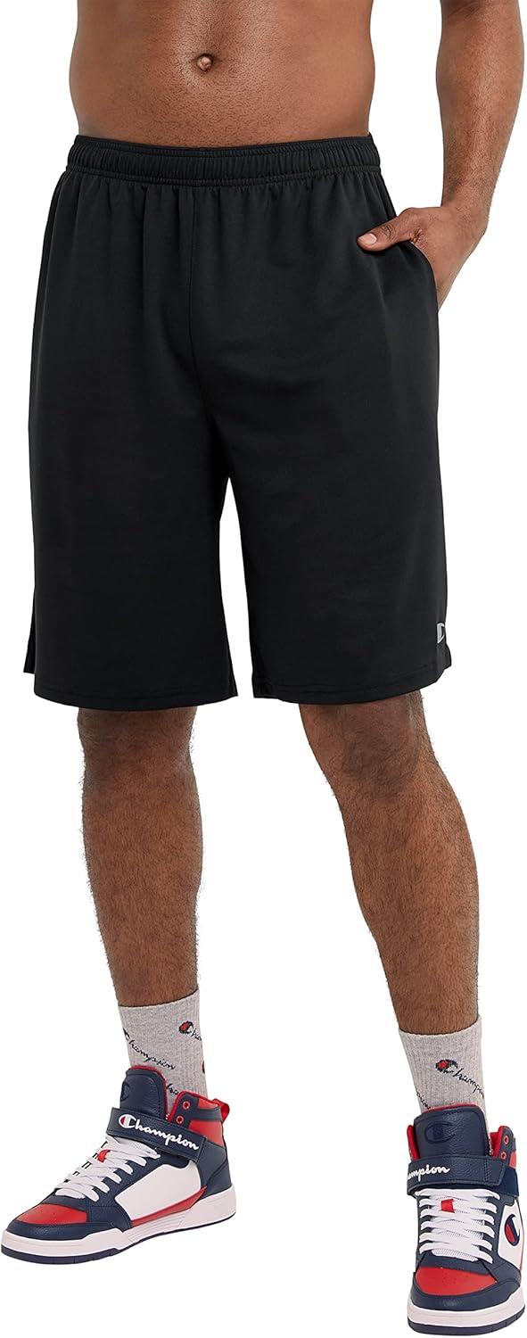 THE LENGTH YOU WANT. For a pickup game, a workout at the gym, or a morning run, these sport shorts for men are a perfect fit. They're made with DOUBLE DRY™ technology that wicks sweat away from skin and dries in a flash to keep you cool and comfortable. Designed for maximum mobility, these men's shorts have an elasticized waistband with an inner drawcord that you can adjust to your best fit. Plus, side vents make for easy moves on and off the court. These performance training shorts are thoughtfully designed with convenient side-seam pockets to hold your phone, keys, and other essentials. You'll appreciate the knee-length 10″ inseam adding coverage and comfort. The finishing touch on this effortless design is the iconic Champion C Logo at the left leg.