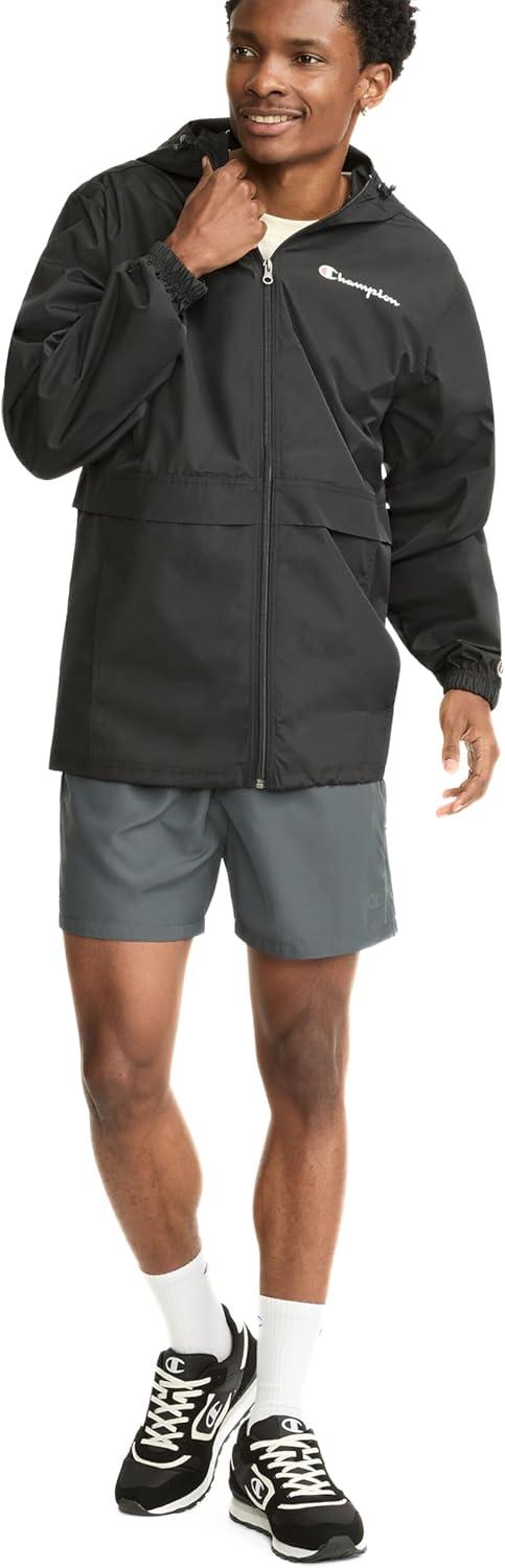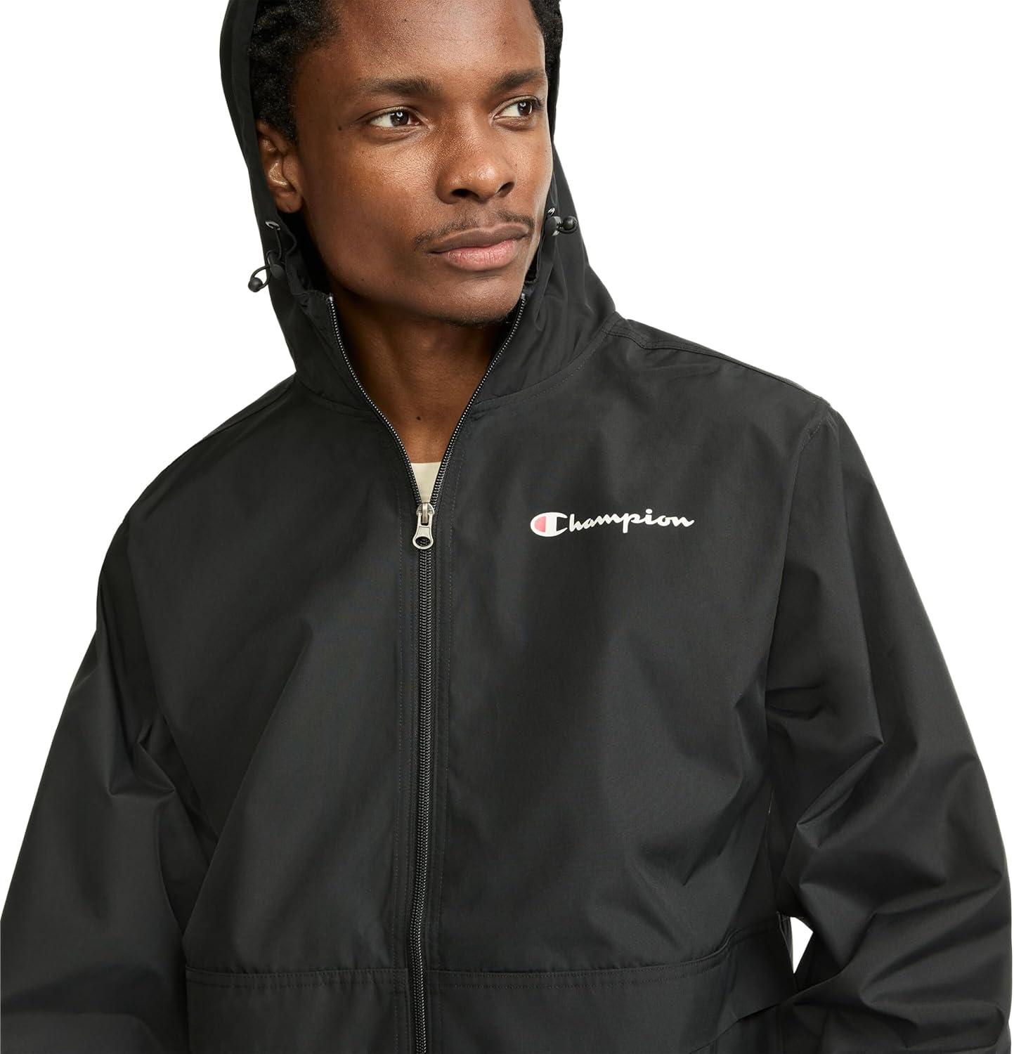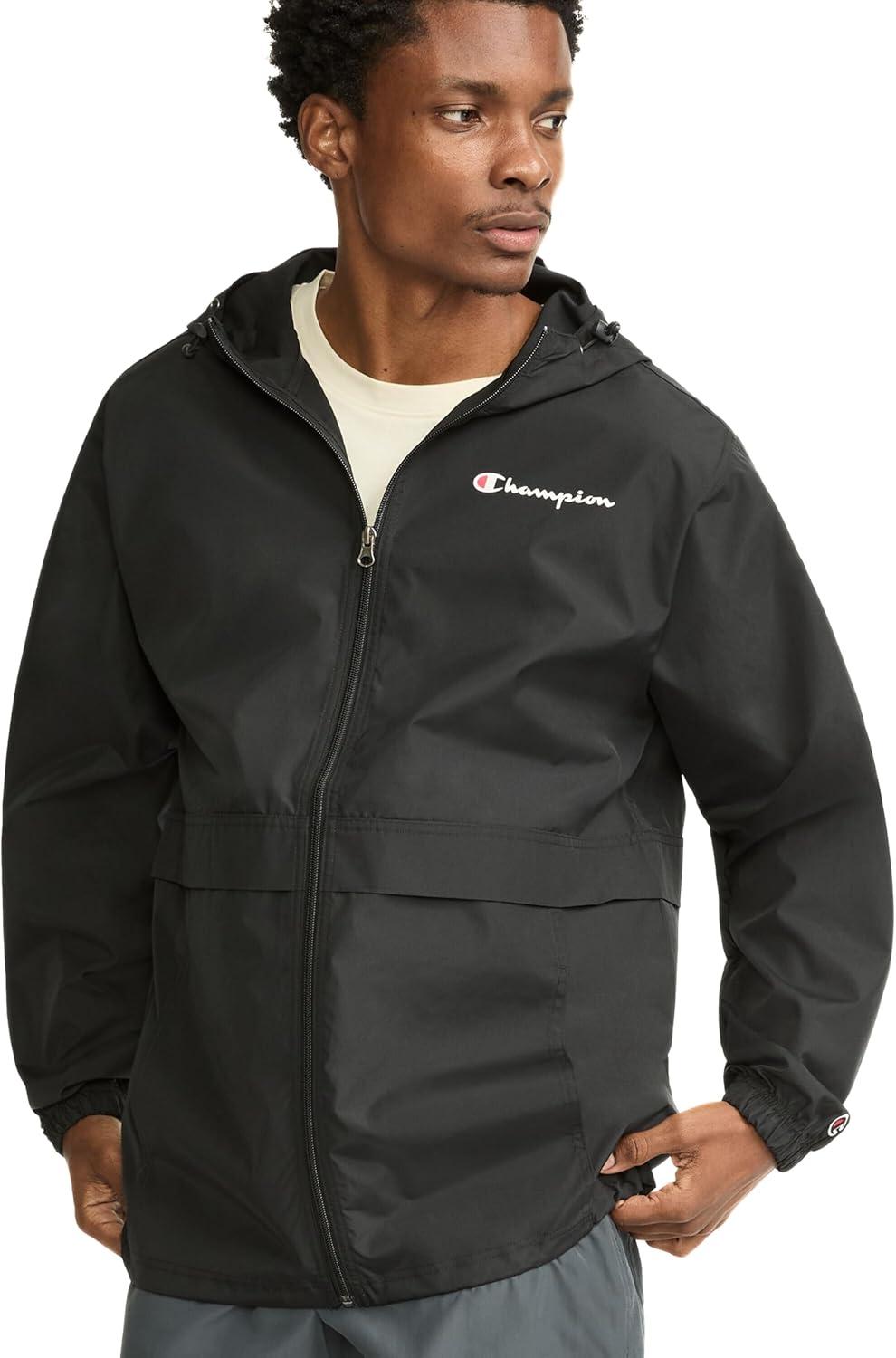 Champion Men's Stadium Packable Jacket (Retired Colors)(Black Small - Small Script Logo)