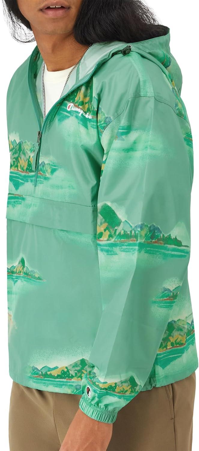 Champion Men's Stadium Packable Jacket (Retired Colors)(Camp Champion Aqua Crush Small Script)