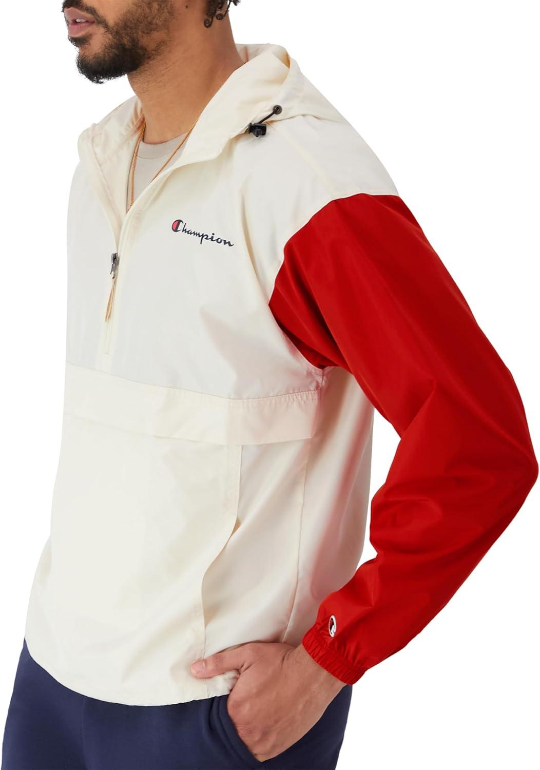 Champion Men's Stadium Packable Jacket (Retired Colors)(Natural/Black/Eclipse Red Small Script)