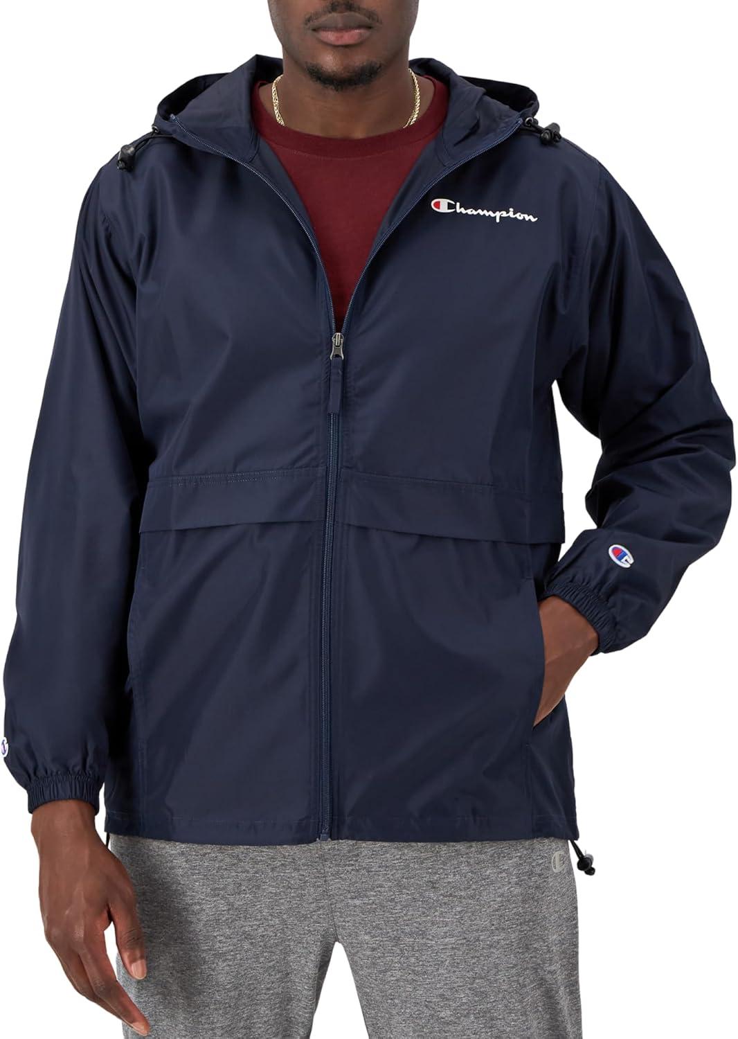 Champion Men's Stadium Packable Jacket (Retired Colors)(Navy Small - Small Script Logo)