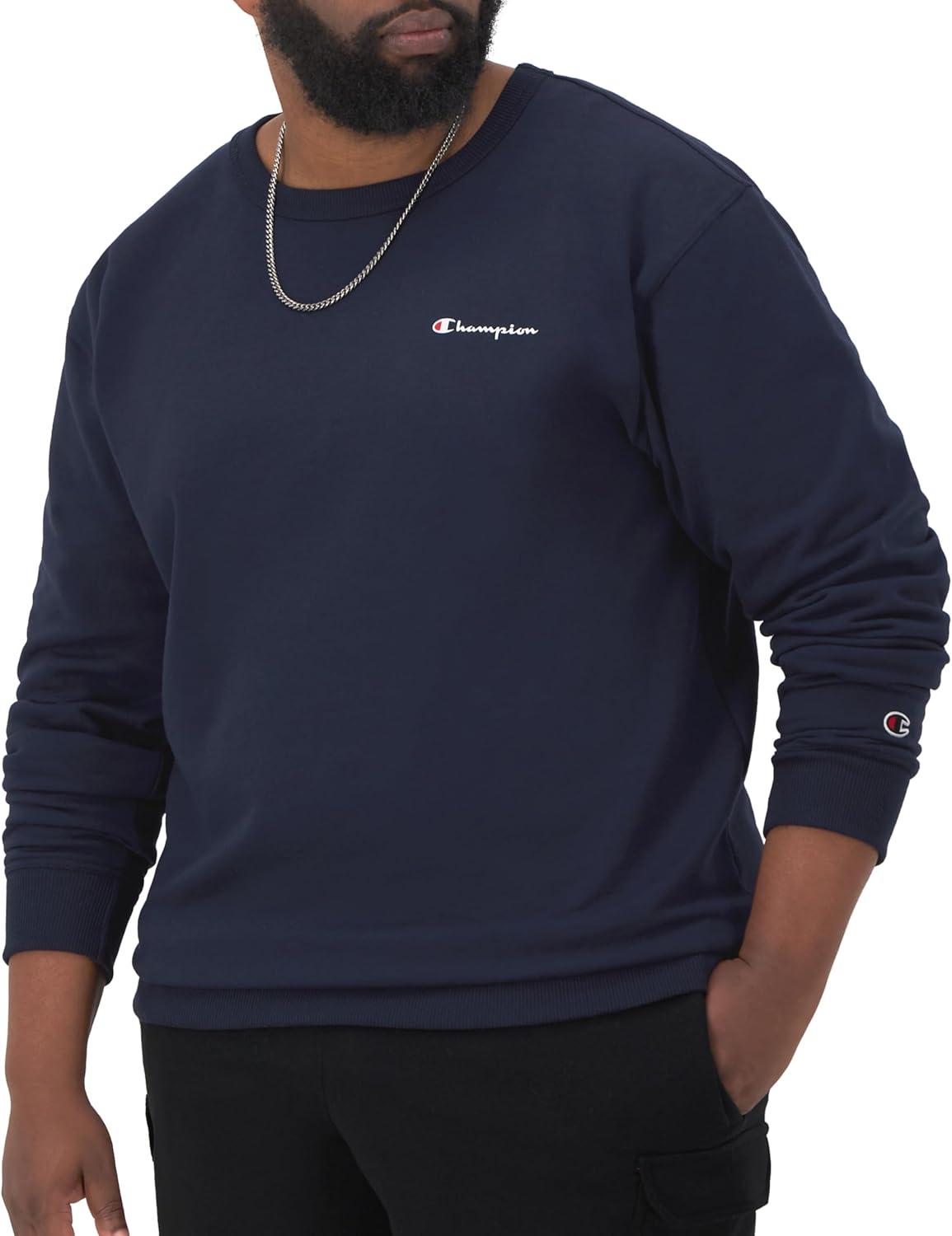 Champion Men's Sweatshirt, Fleece Midweight Crewneck Sweatshirt (Reg. Or Big & Tall)(Navy Small Script)