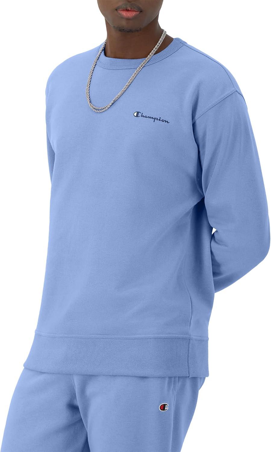 Champion Men's Sweatshirt, Fleece Midweight Crewneck Sweatshirt (Reg. Or Big & Tall)(Plaster Blue Small Script)