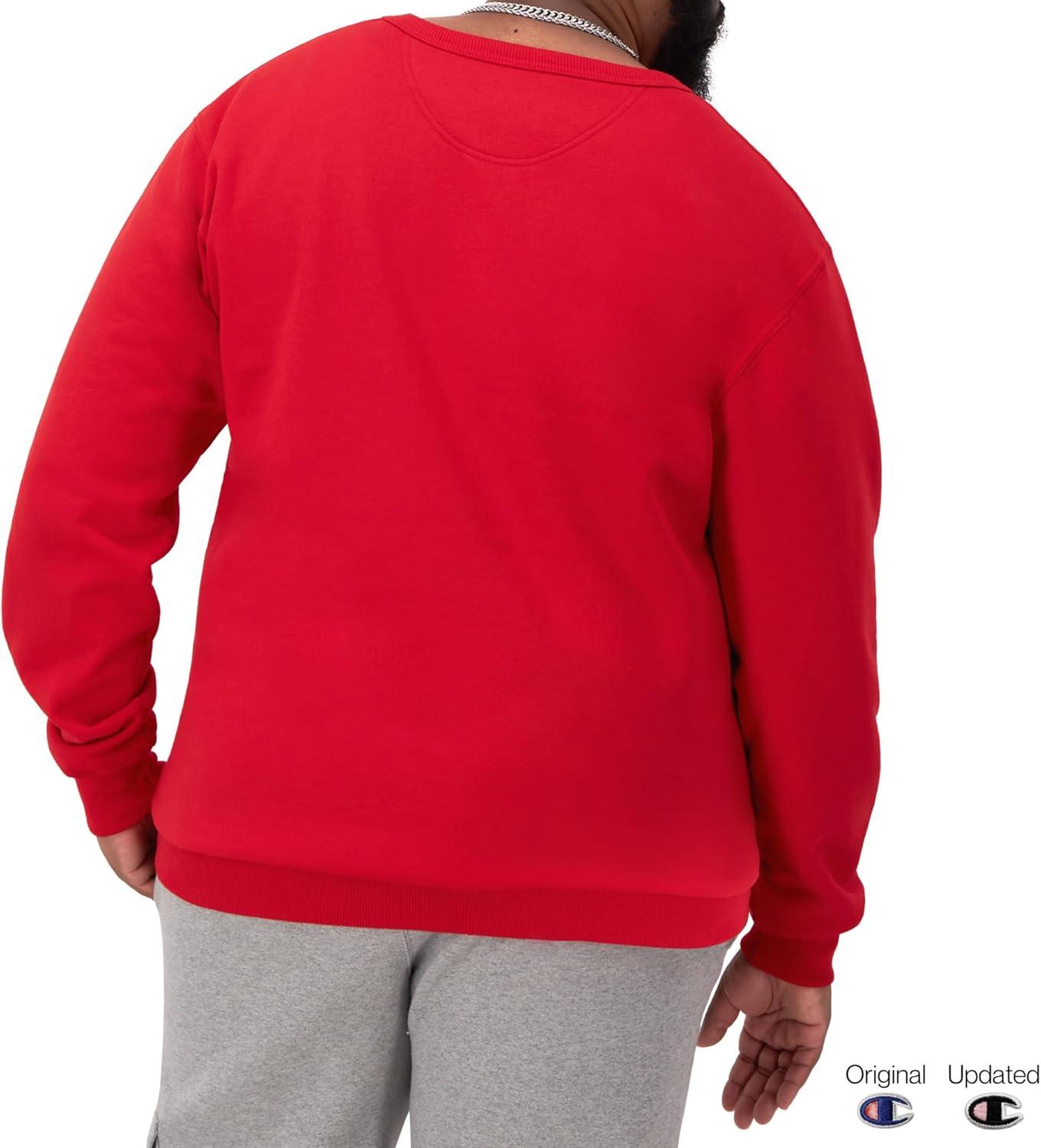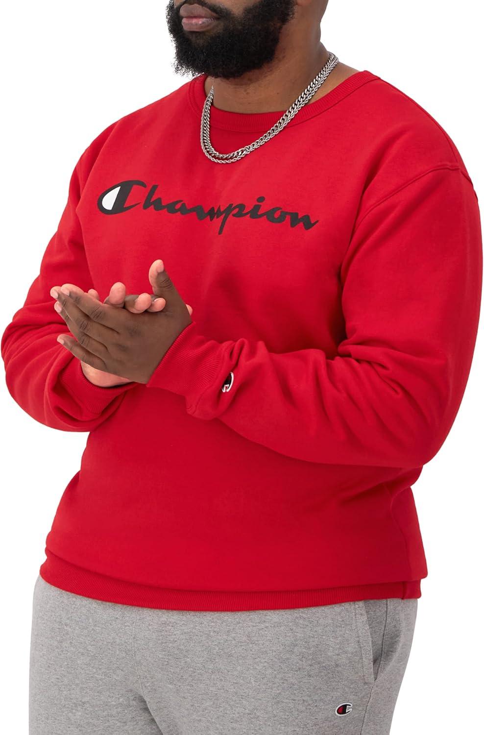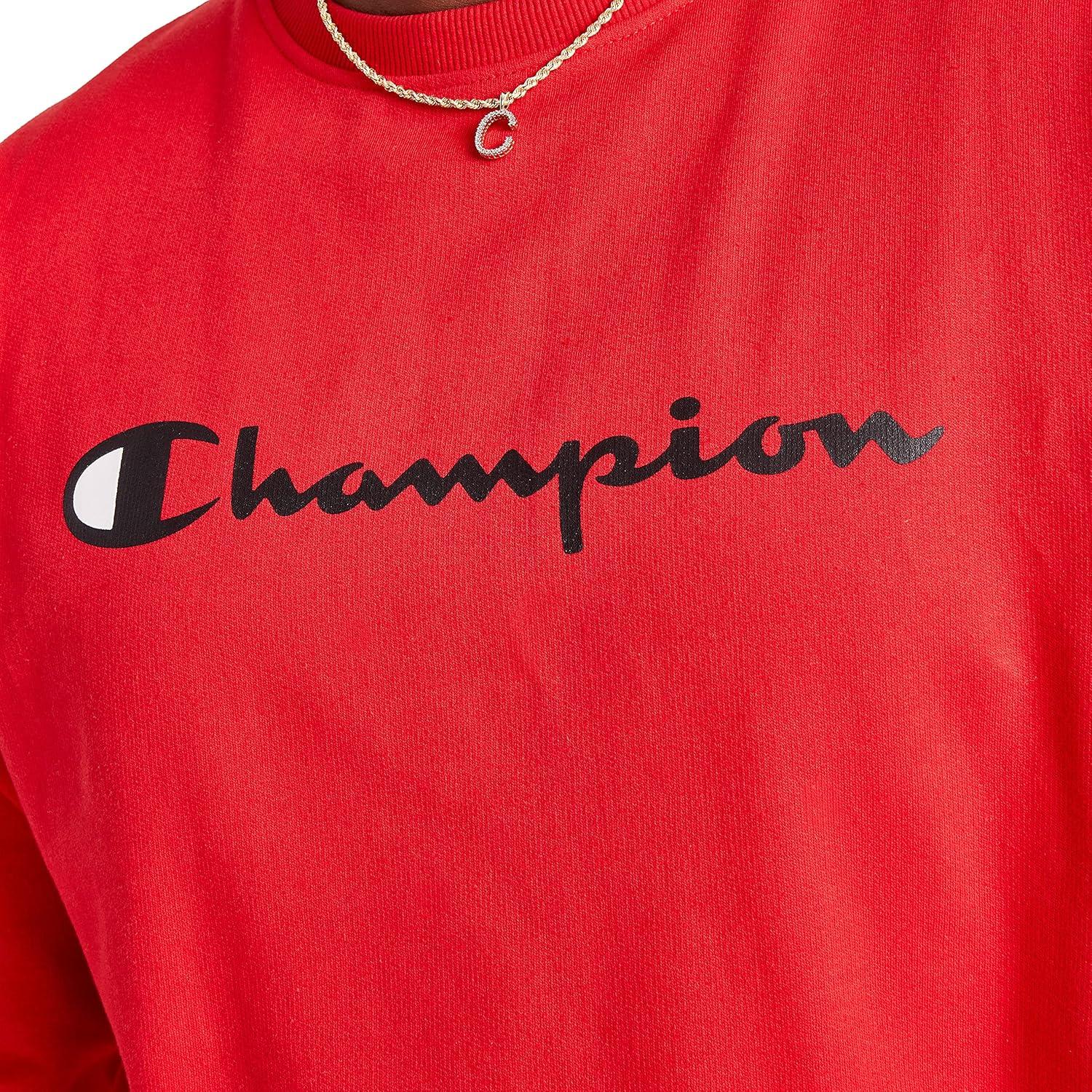Champion Men's Sweatshirt, Fleece Midweight Crewneck Sweatshirt (Reg. Or Big & Tall)(Team Red Scarlet - Classic Script Logo)