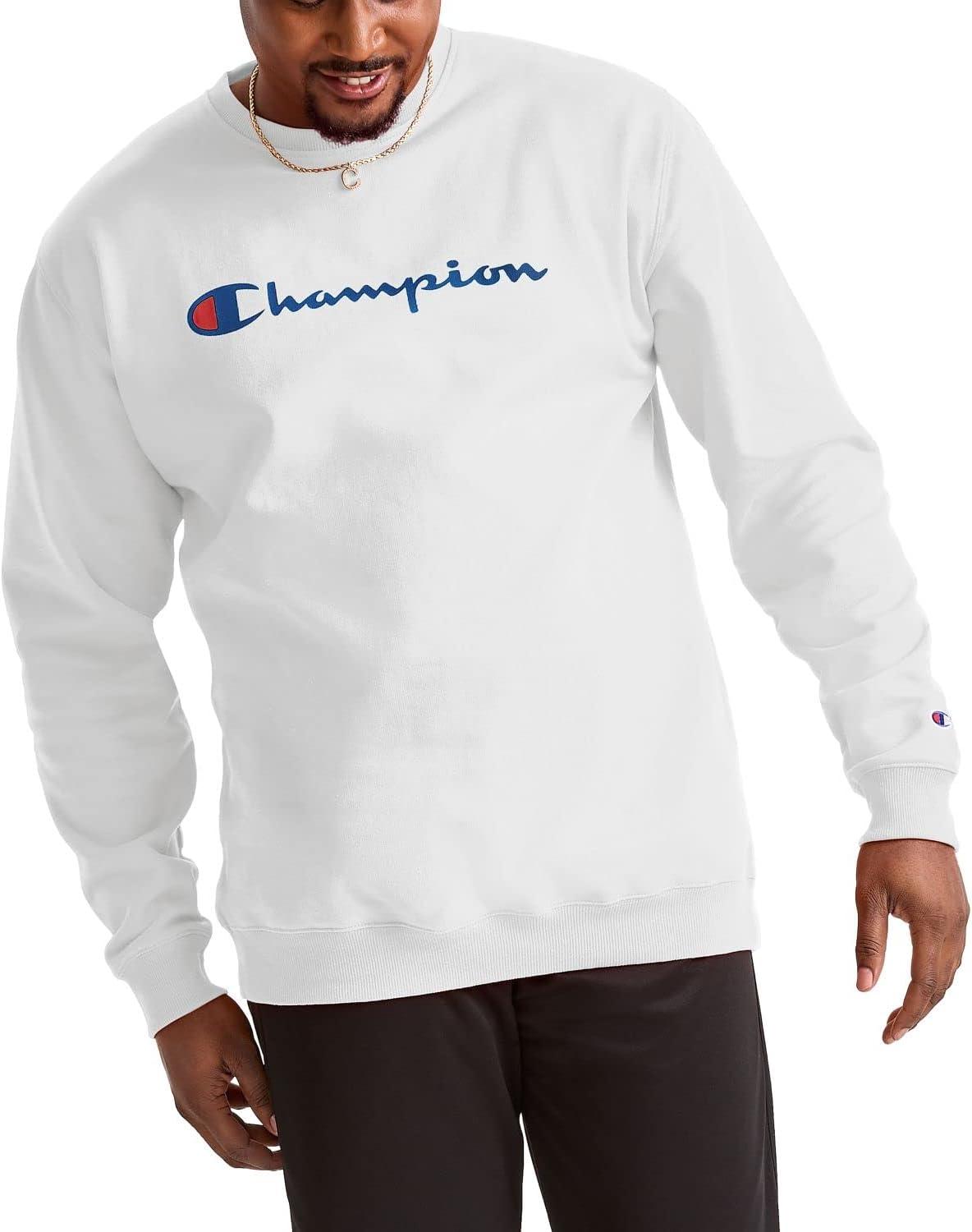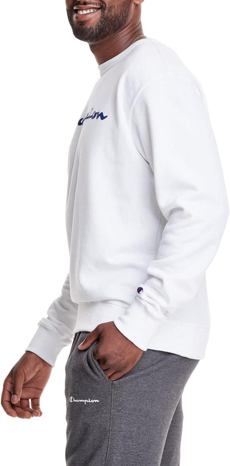 Champion Men’s Sweatshirt, Fleece Midweight Crewneck Sweatshirt (Reg. Or Big & Tall)(White Script)