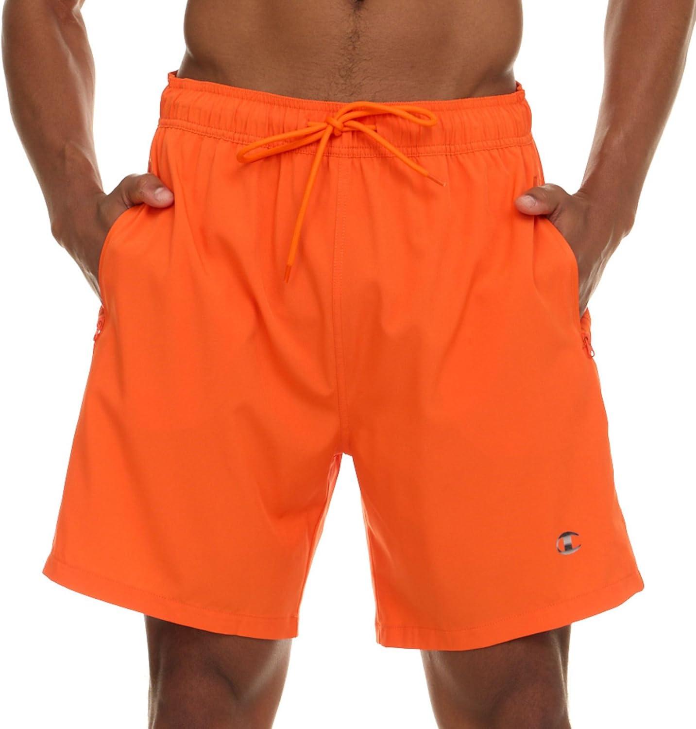 Champion Mens Swim Trunks with Compression Liner, 2 in 1 Mens Bathing Suit Shorts, 7 Inch Inseam Board Shorts for Swimming(Orange)
