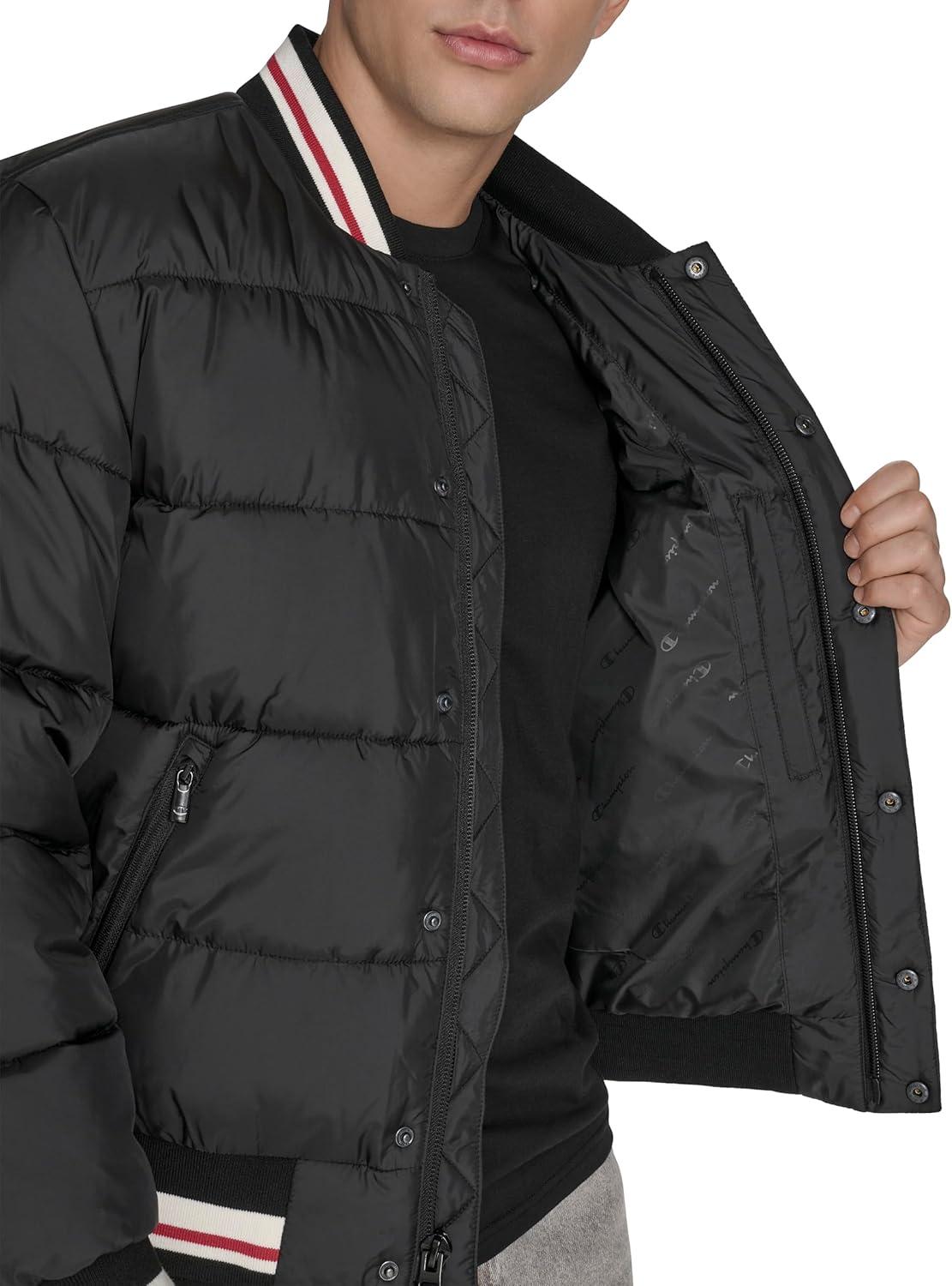 Champion mens Varsity Bomber Puffer Jacket(New Black Tech)