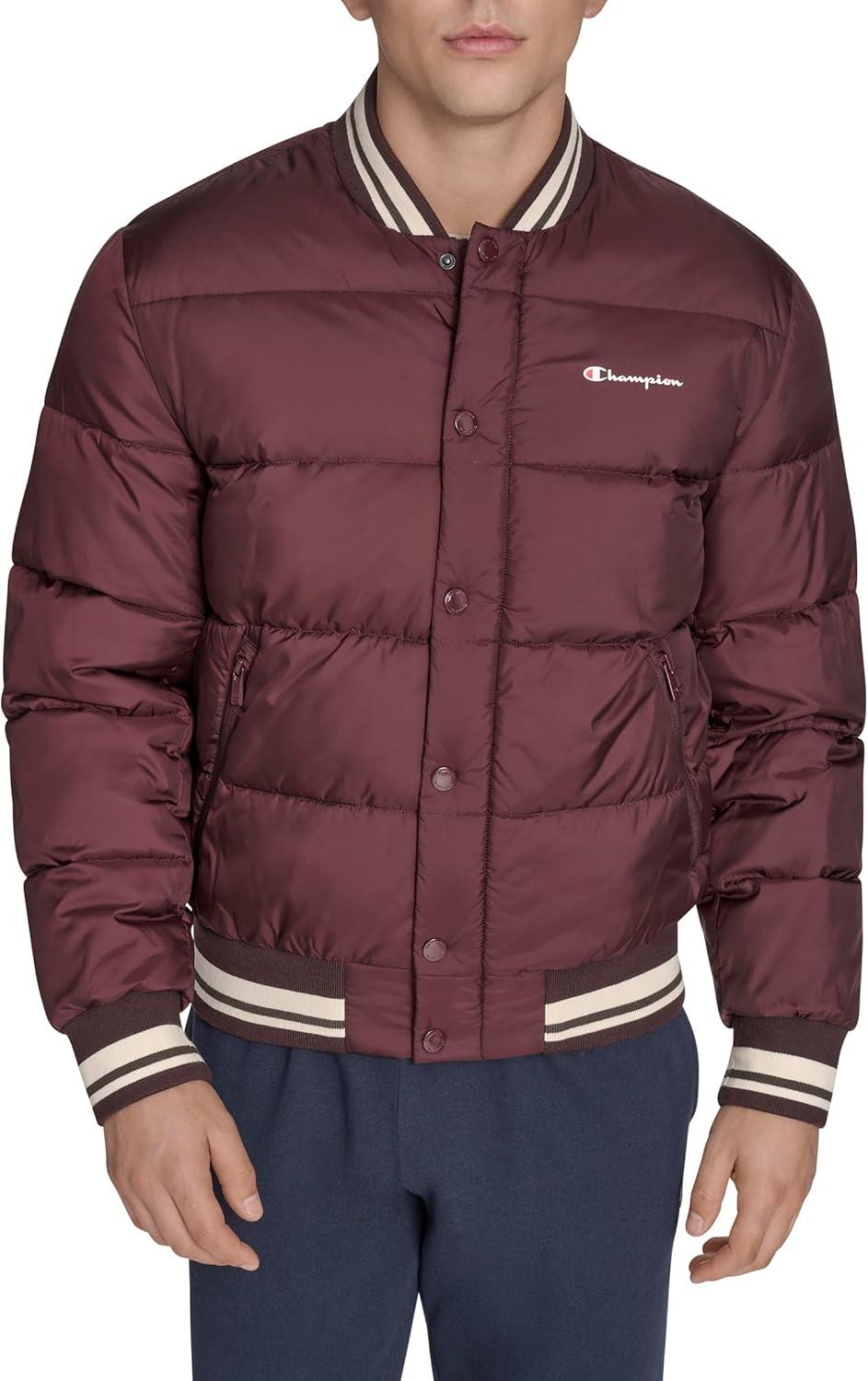 Champion mens Varsity Bomber Puffer Jacket(Wine Tech)