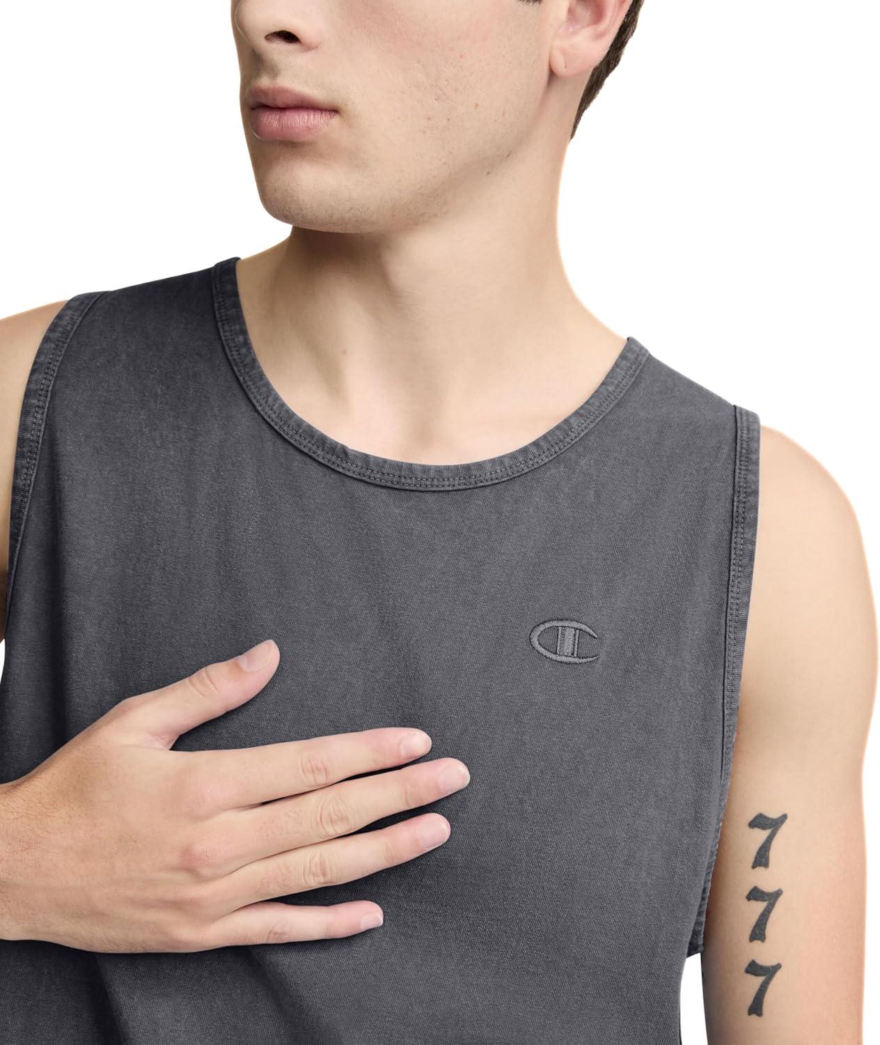 VINTAGE NEVER LOOKED SO GOOD – With unmatched comfort and softness, our specialty vintage wash dye lends to a worn-in look for an ode to vintage coolness. Crafted with attention to detail and built to be a longtime favorite, this men's Tank Top sports a droptail, loose fit and side slits at the hem for ease of movement. Finished with an embroidered dyed-to-match “C” Logo you can pair this men’s Tank with your favorite Champion shorts or sweatpants for a rounded out, classic look that's always in.