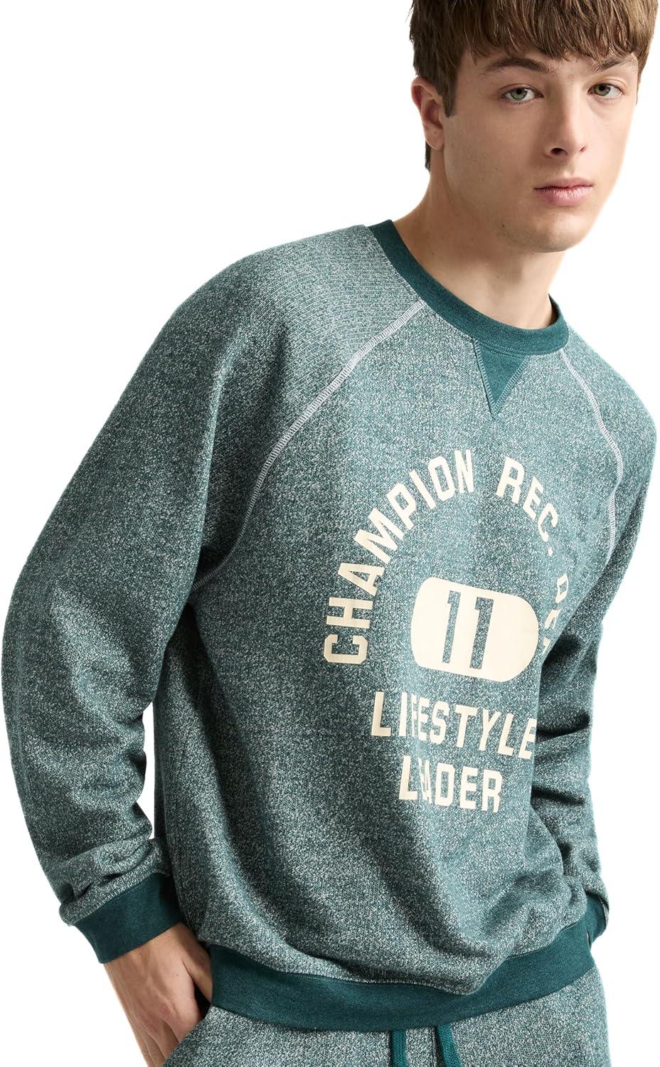 Champion Men's Yearbook Raglan Crewneck Sweatshirt, Crest(Emerald Allure Heather)