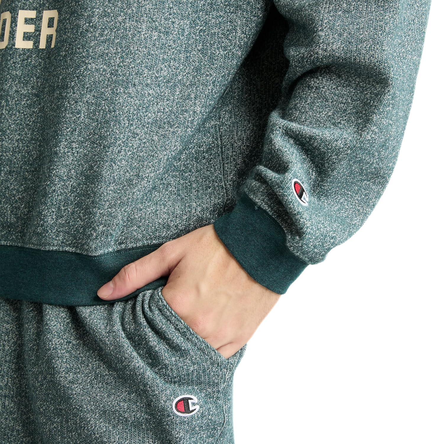 ALL ABOUT THE CREW If you're looking for the ideal pullover, look no further than this Sports & Rec Crewneck Sweatshirt for men. Crafted with soft airy blended fabric, this sporty design has a soft, brushed interior for warmth without weighing you down. The unique heathered look, contrast V-notch for a vintage style, and matching neck tape add to its signature appeal. The classic style is finished with a sports themed collegiate crest nestled under a bold Champion block graphic front and center with an iconic C patch on the left sleeve for an authentic touch. From joggers to shorts, this sweatshirt is the perfect match to your favorite Champion styles.
