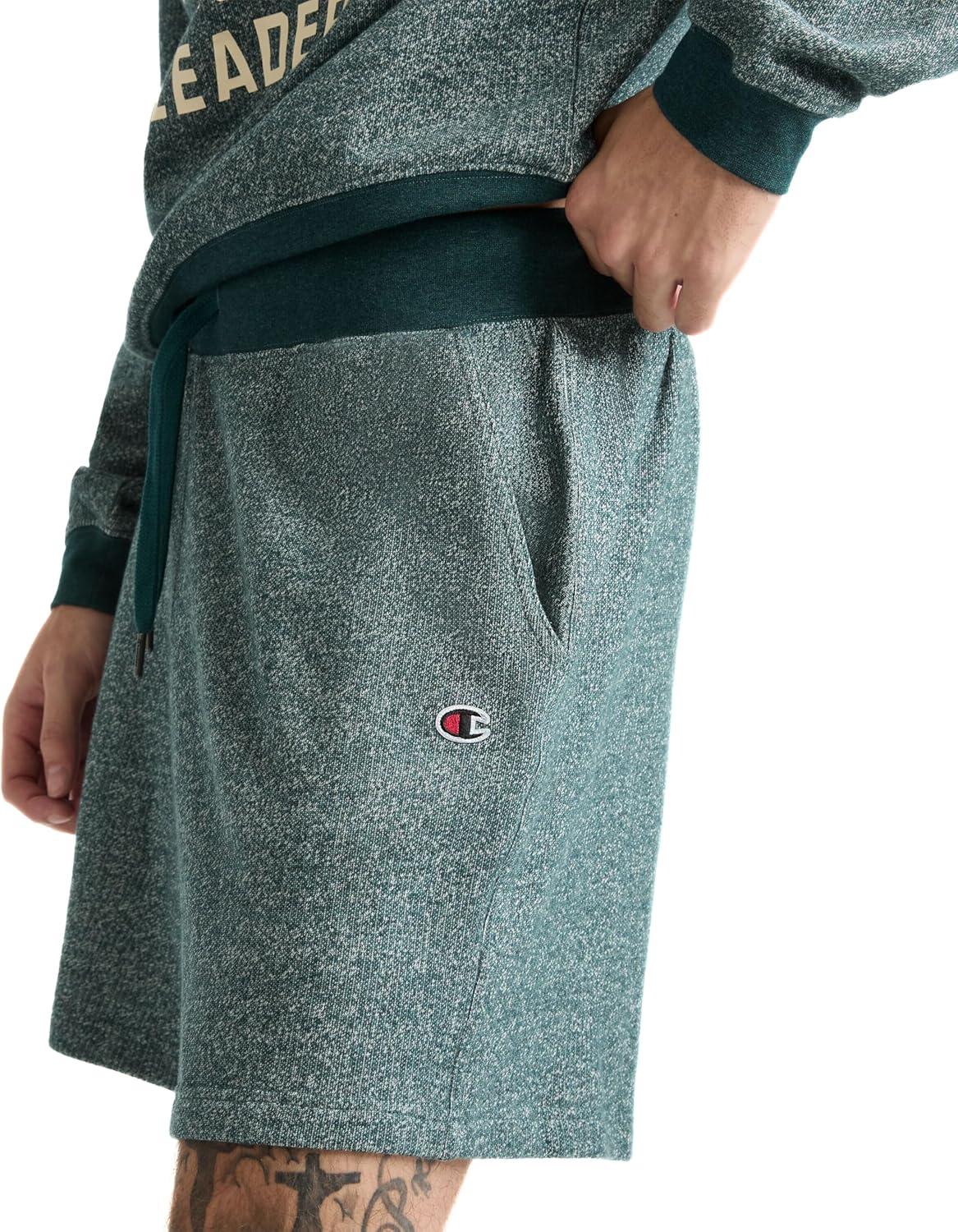 YEAR-ROUND SWEAT SHORTS For effortless comfort that won't weigh you down, these fleece men's shorts are a go-to pick. Hitting above the knee with a 7″ inseam, these standard-fit sweat shorts for men are made from a cotton blend and feature year-round softness and comfort. The unique heathered fabric brings a fresh look to a classic fit. A set on elastic waistband and drawcord give you plenty of fit flexibility. Two side pockets and a back pocket hold your essentials for a hands-free experience. These fleece shorts proudly sport the iconic C at the left hip for recognizable style.
