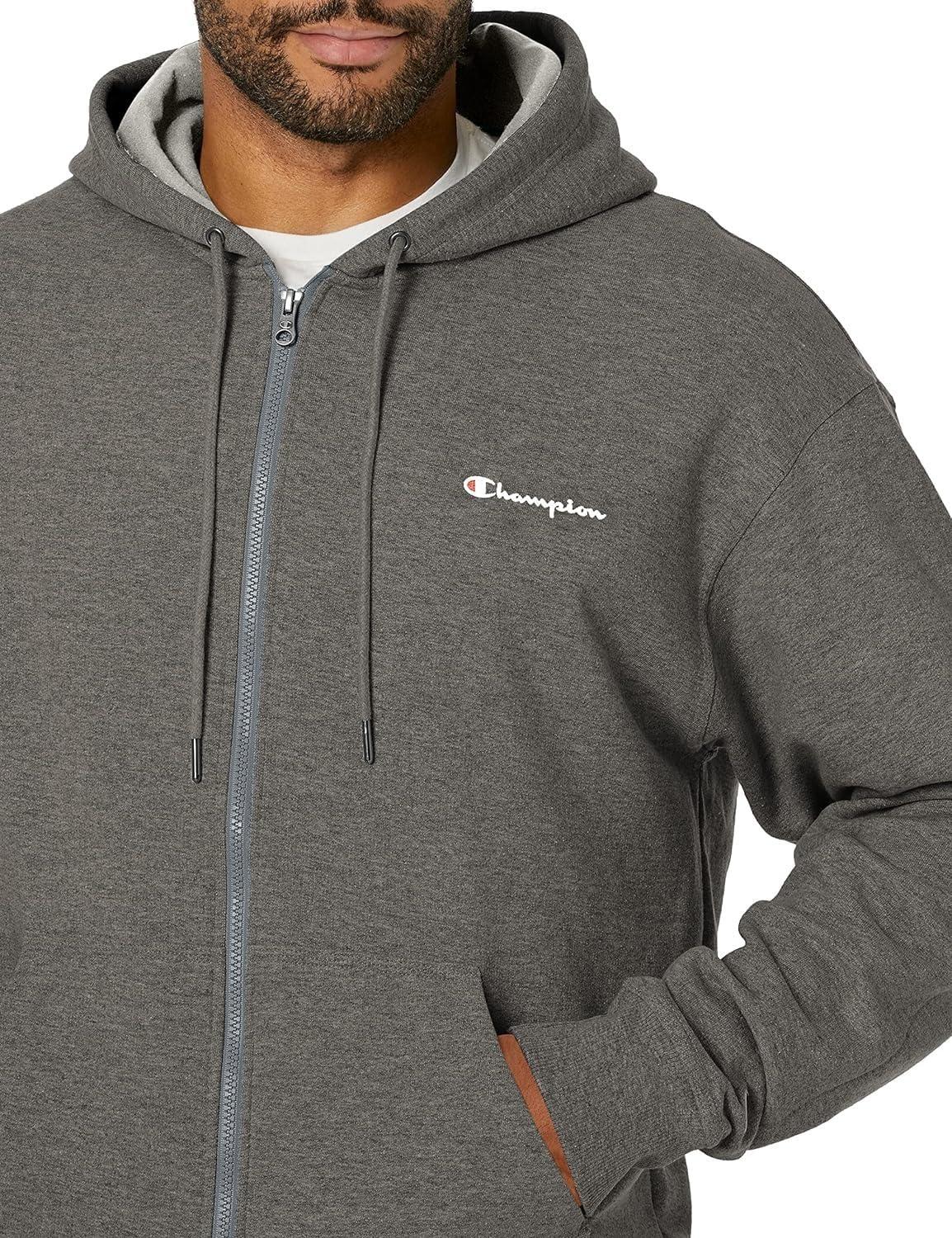 Champion Men’s Zip-up Hoodie, Comfortable Zip-up Hoodie Sweatshirt for Men (Reg. Or Big & Tall)(Granite Heather Small – Small Script Logo)