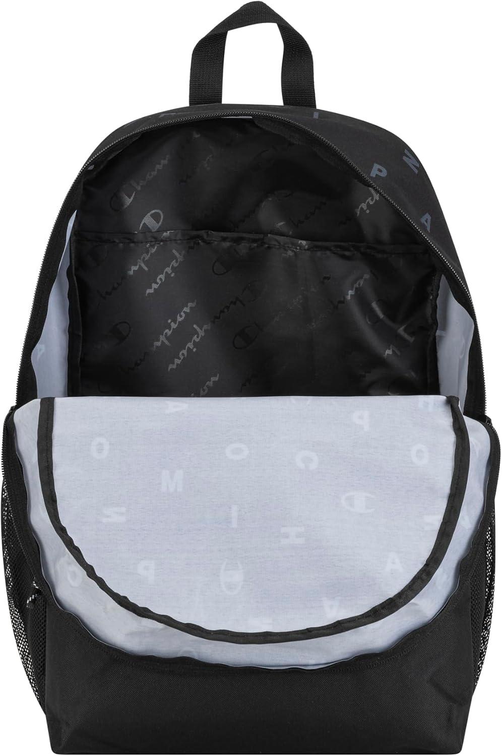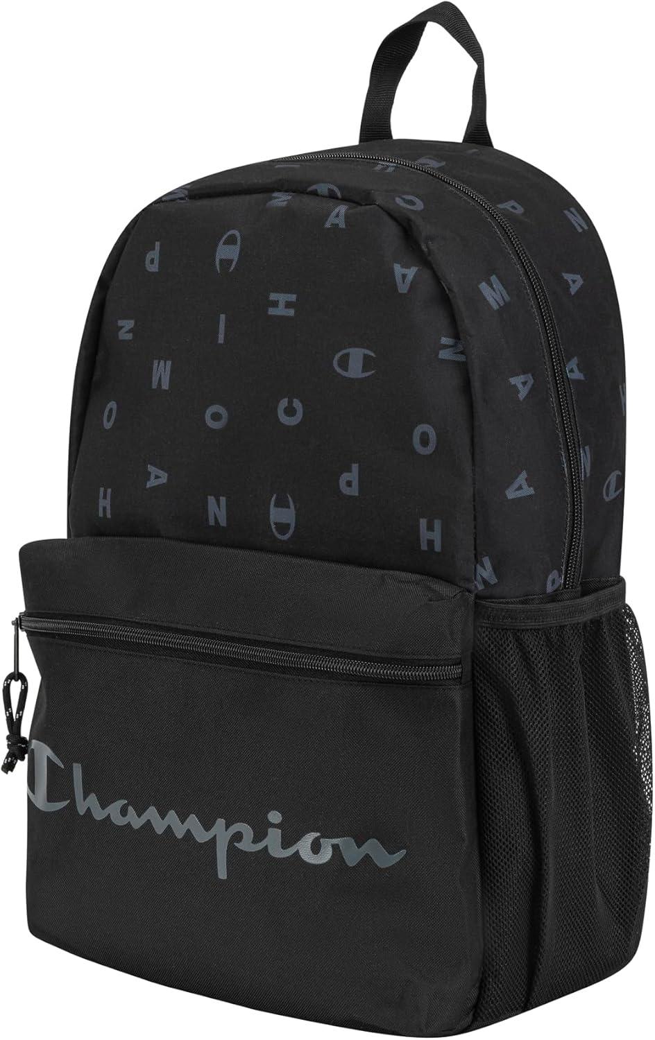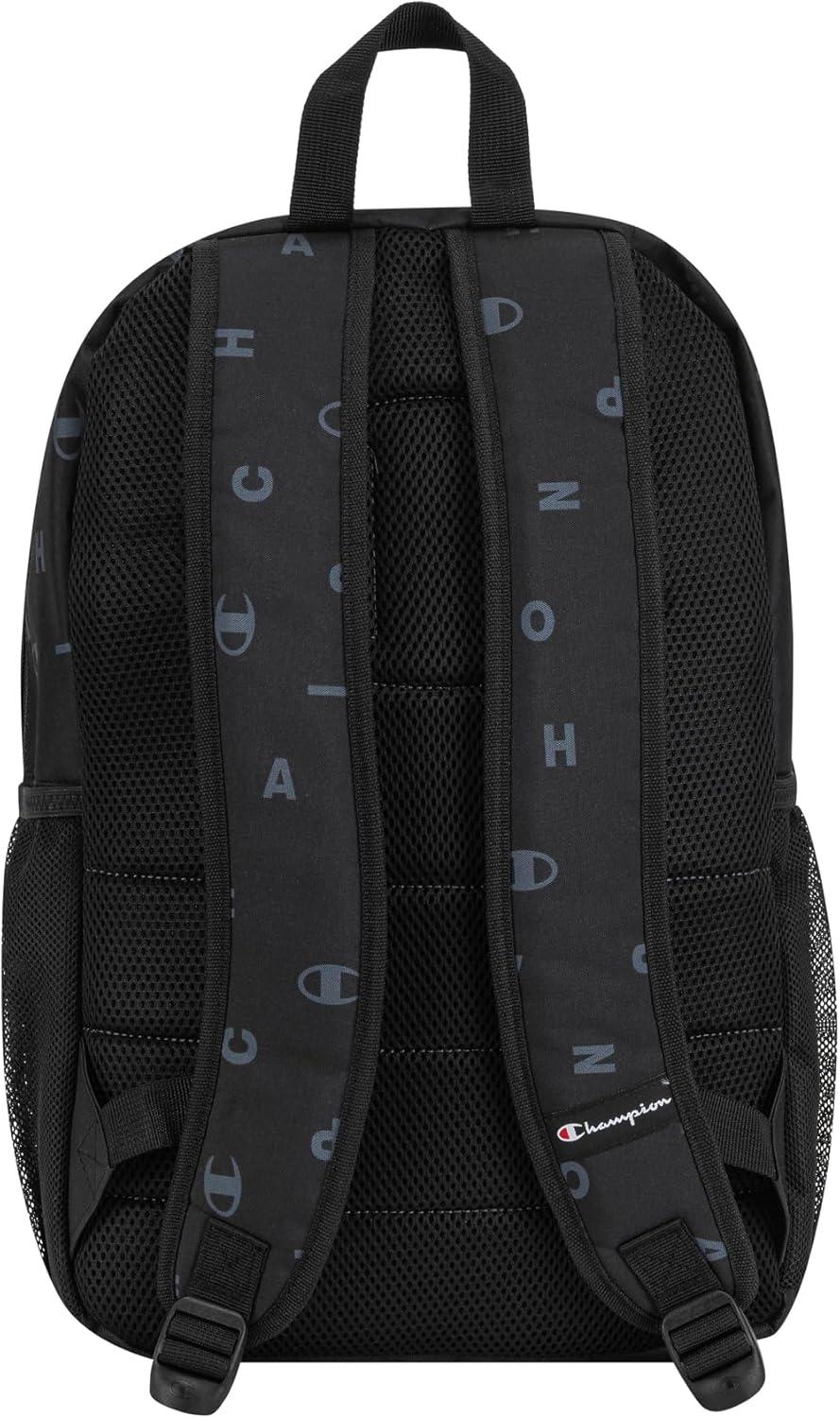 Champion Merit Backpack with Padded Straps, Water Bottle Pocket and Laptop Compartment for Daily Use, Black/White, One Size(Black/Grey)