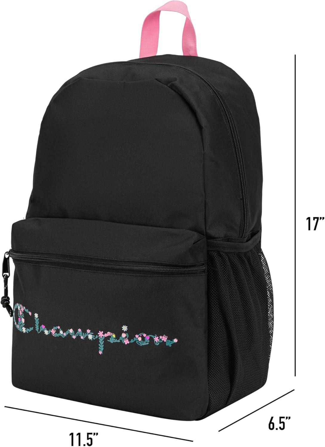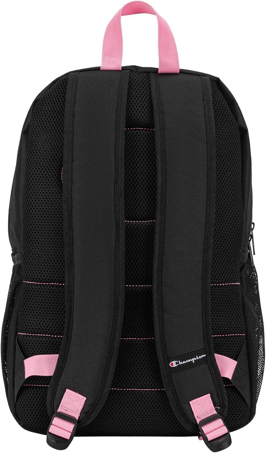 Champion Merit Backpack with Padded Straps, Water Bottle Pocket and Laptop Compartment for Daily Use, Black/White, One Size(Pink/Black)