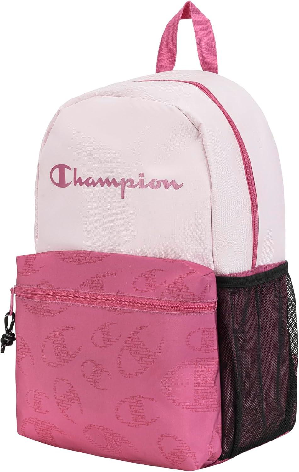 Champion Merit Backpack with Padded Straps, Water Bottle Pocket and Laptop Compartment for Daily Use, Black/White, One Size(Pink)