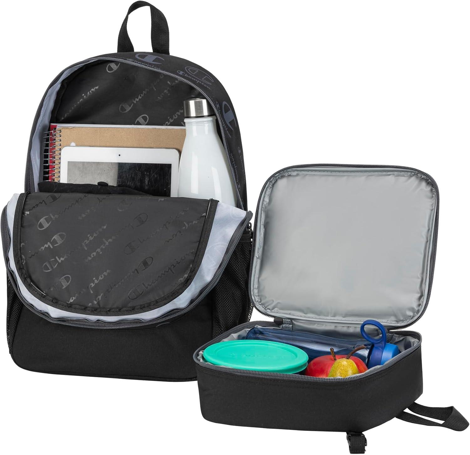Champion Mode Lunch Kit & Backpack, Black Combo, One Size(Black/Grey)