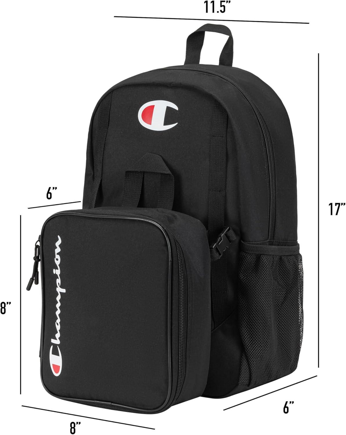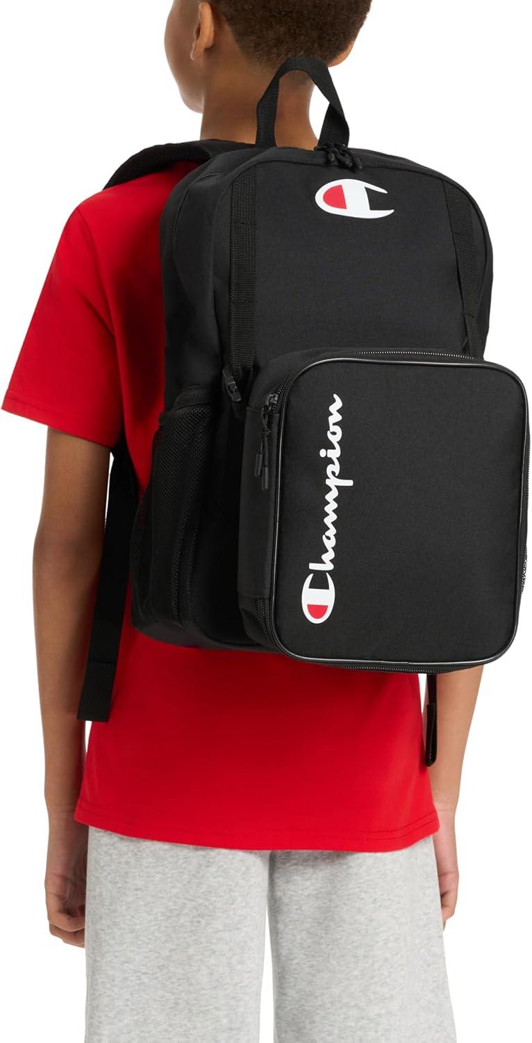 STYLING: The Champion Mode Lunch Box Combo Youth Backpack boasts a sporty design, highlighted by a high-density print Champion logo. Its modern silhouette makes it the perfect accessory for young ones looking to make a statement wherever they go.