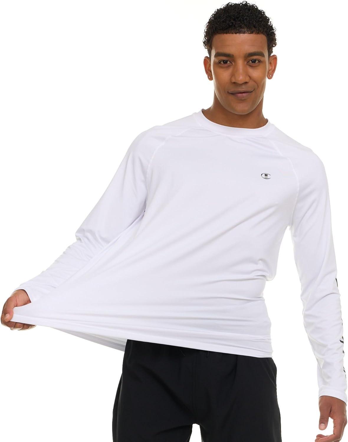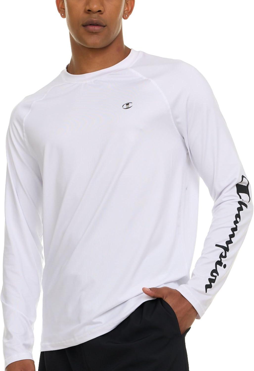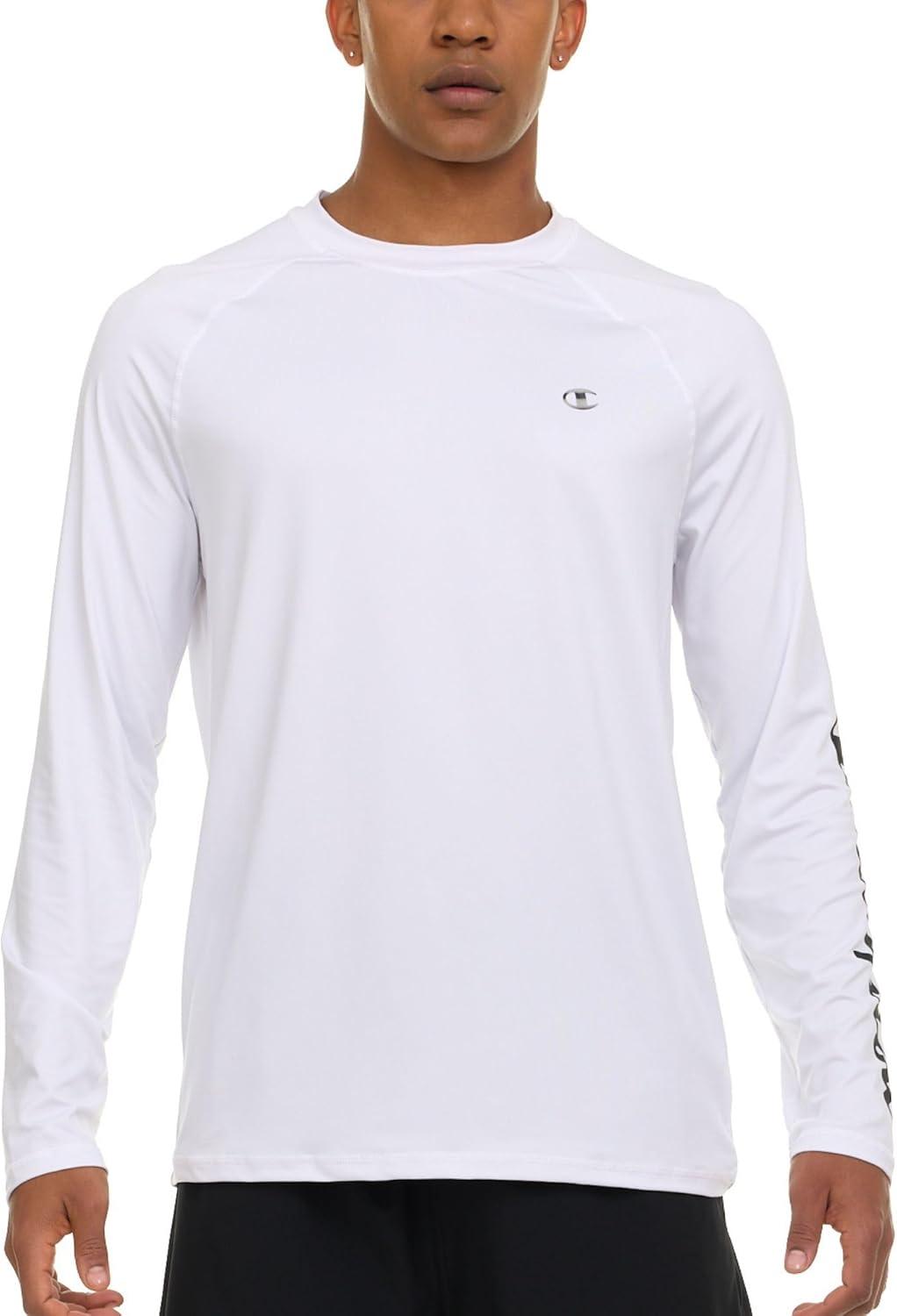 Champion Rash Guard for Men, Long Sleeve Mens Swim Shirt for Fishing Hiking UPF+ 50 SPF Sun UV Protection, Quick Dry(White)