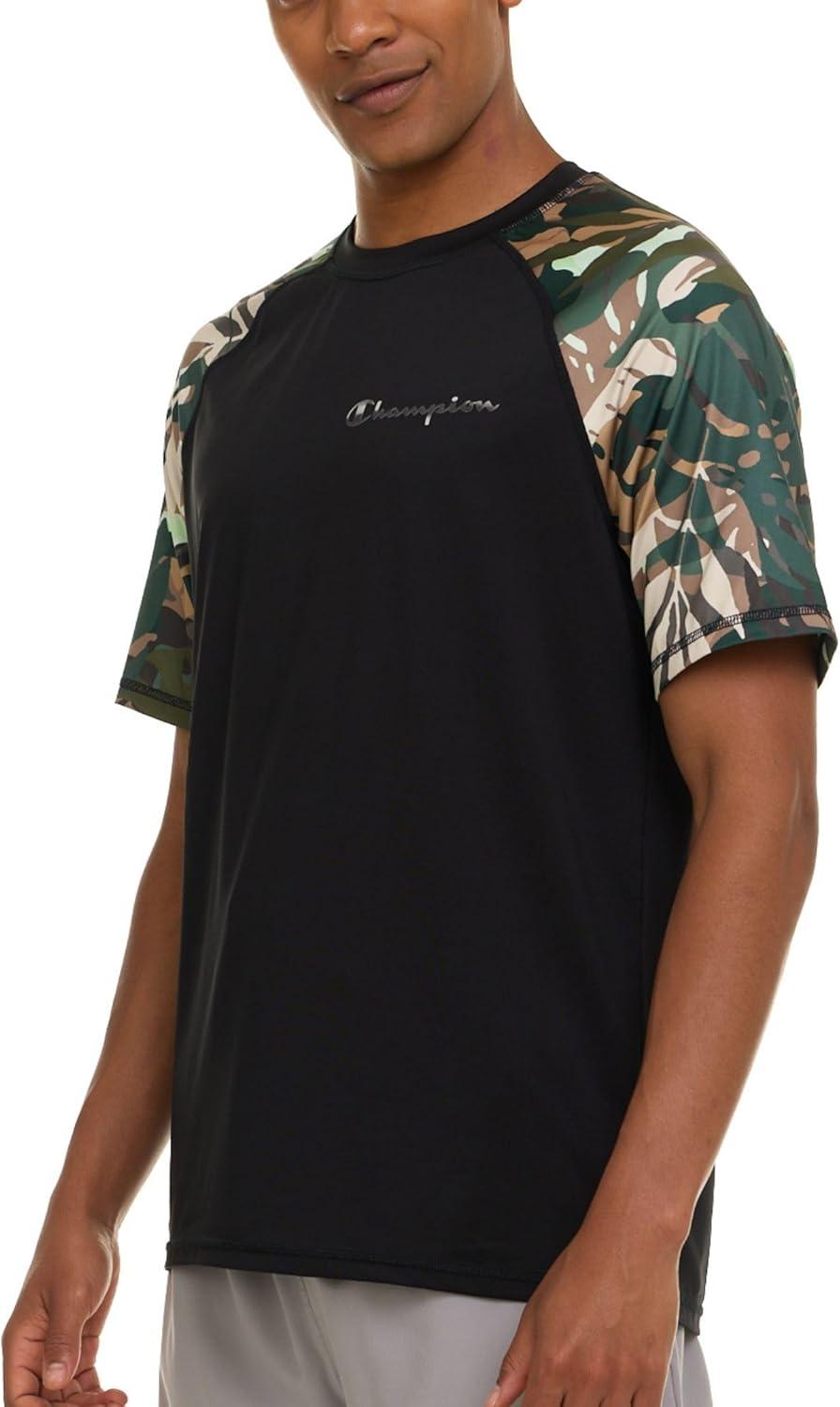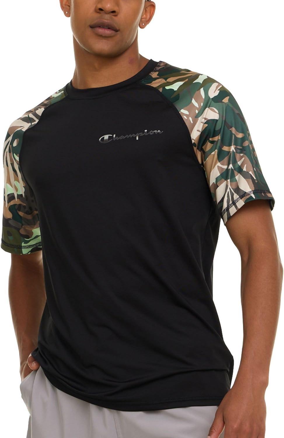 Champion Rash Guard for Men Short Sleeve, Mens Swim Shirt, Sun Shirt UPF+ 50 UV Protection, SPF Quick Drying Rashguard(Black/Camo)