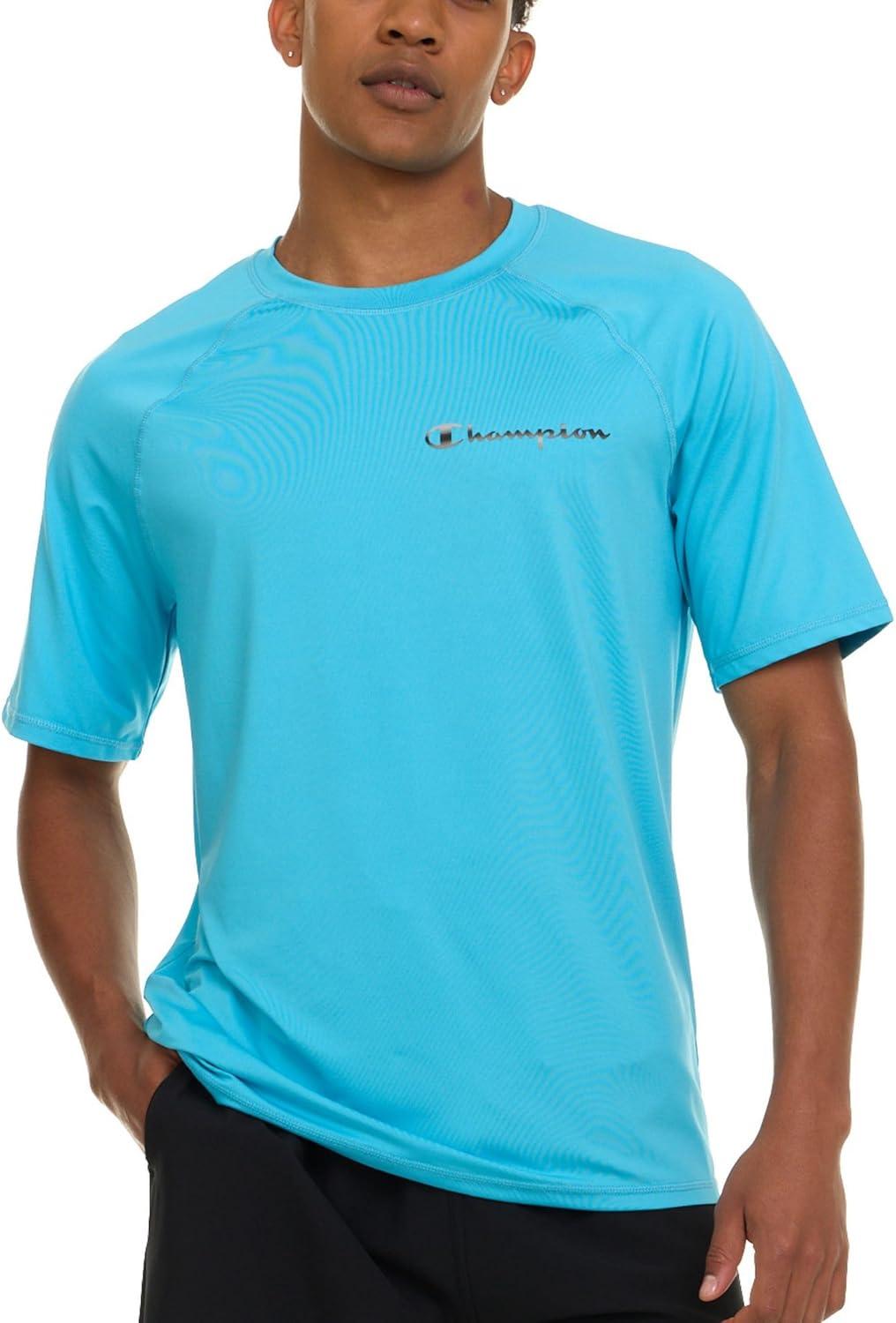 Champion Rash Guard for Men Short Sleeve, Mens Swim Shirt, Sun Shirt UPF+ 50 UV Protection, SPF Quick Drying Rashguard(Light Blue)