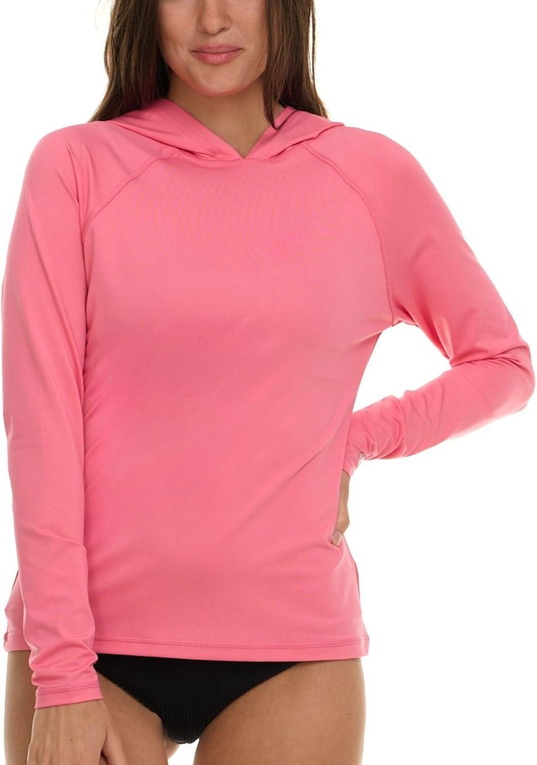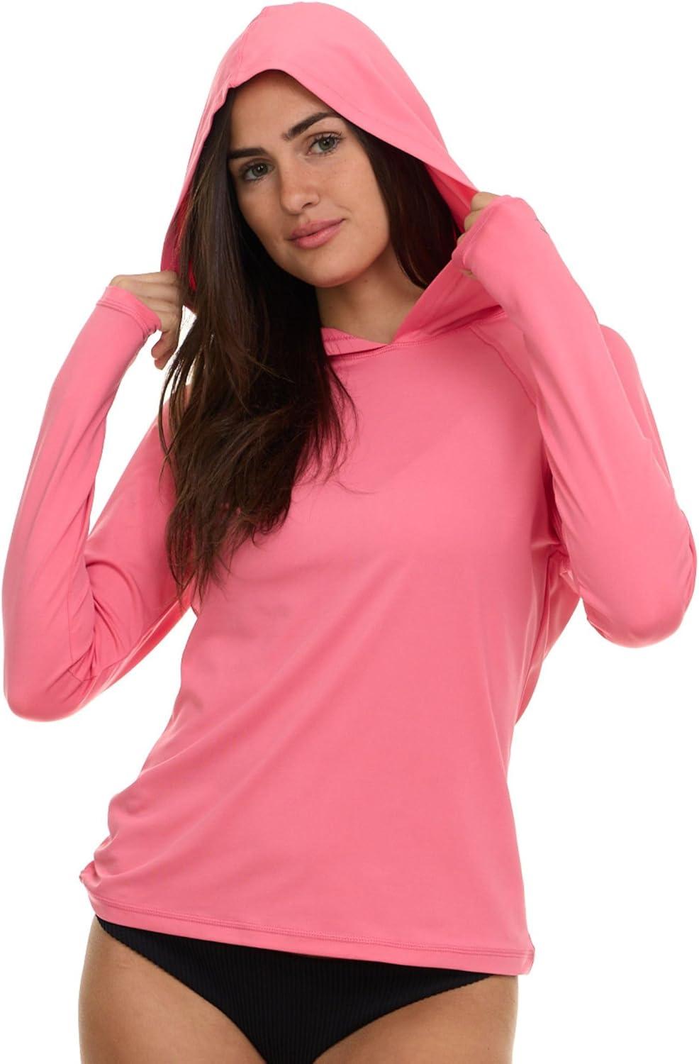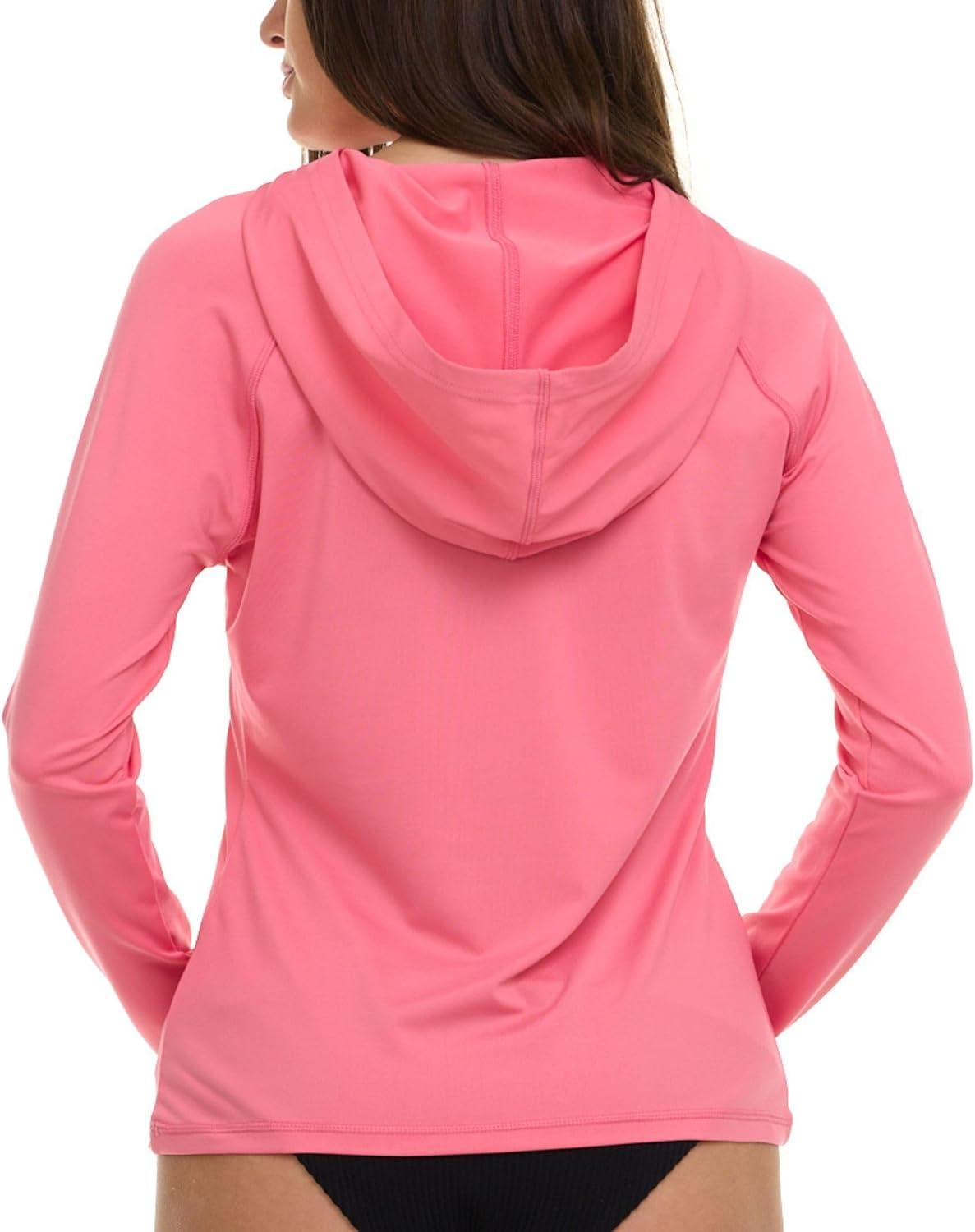 Champion Rash Guard for Women with Hood, Long Sleeve Hoodie Swim Shirts for Women, Quick Dry UPF 50+ SPF Sun & UV Protection(Pink)