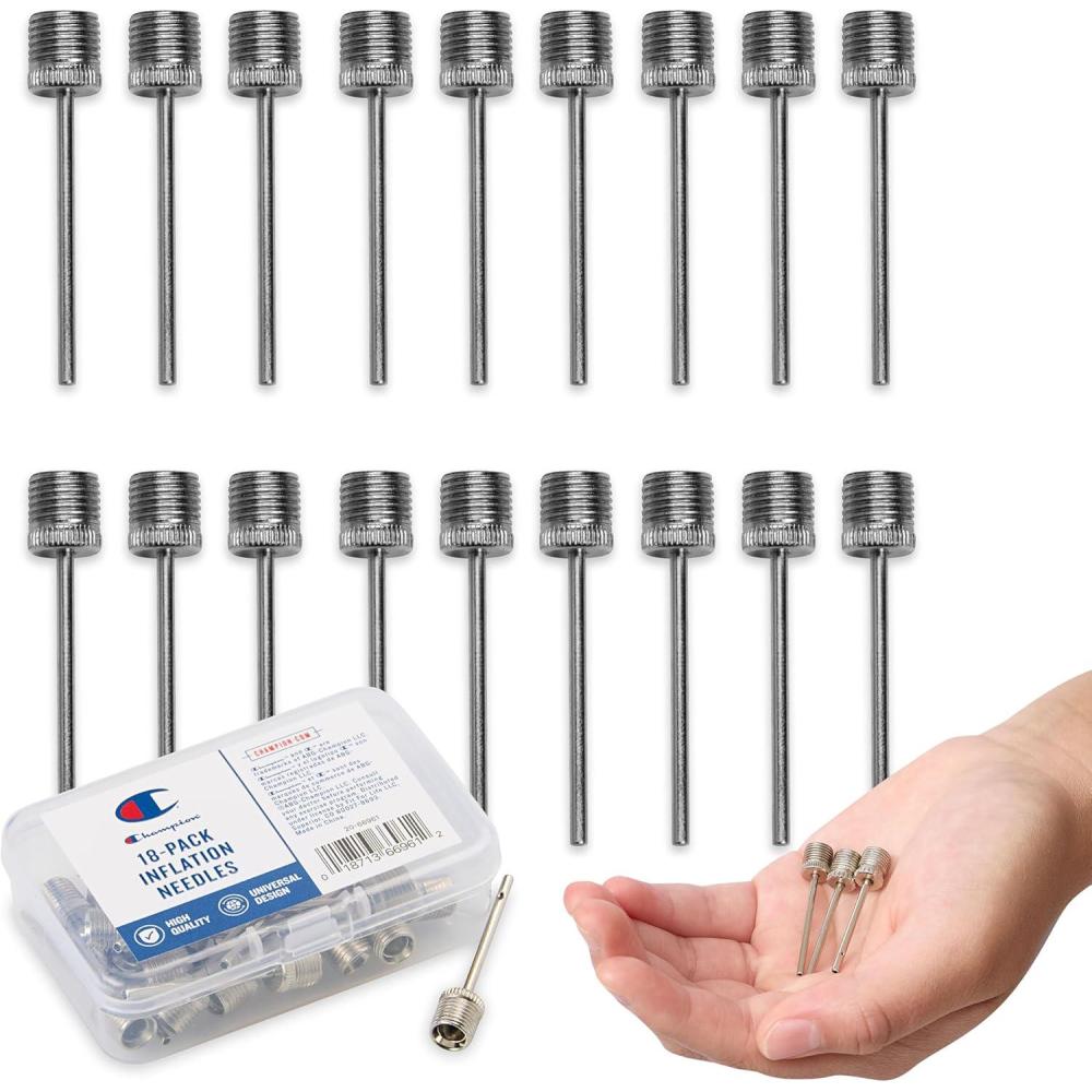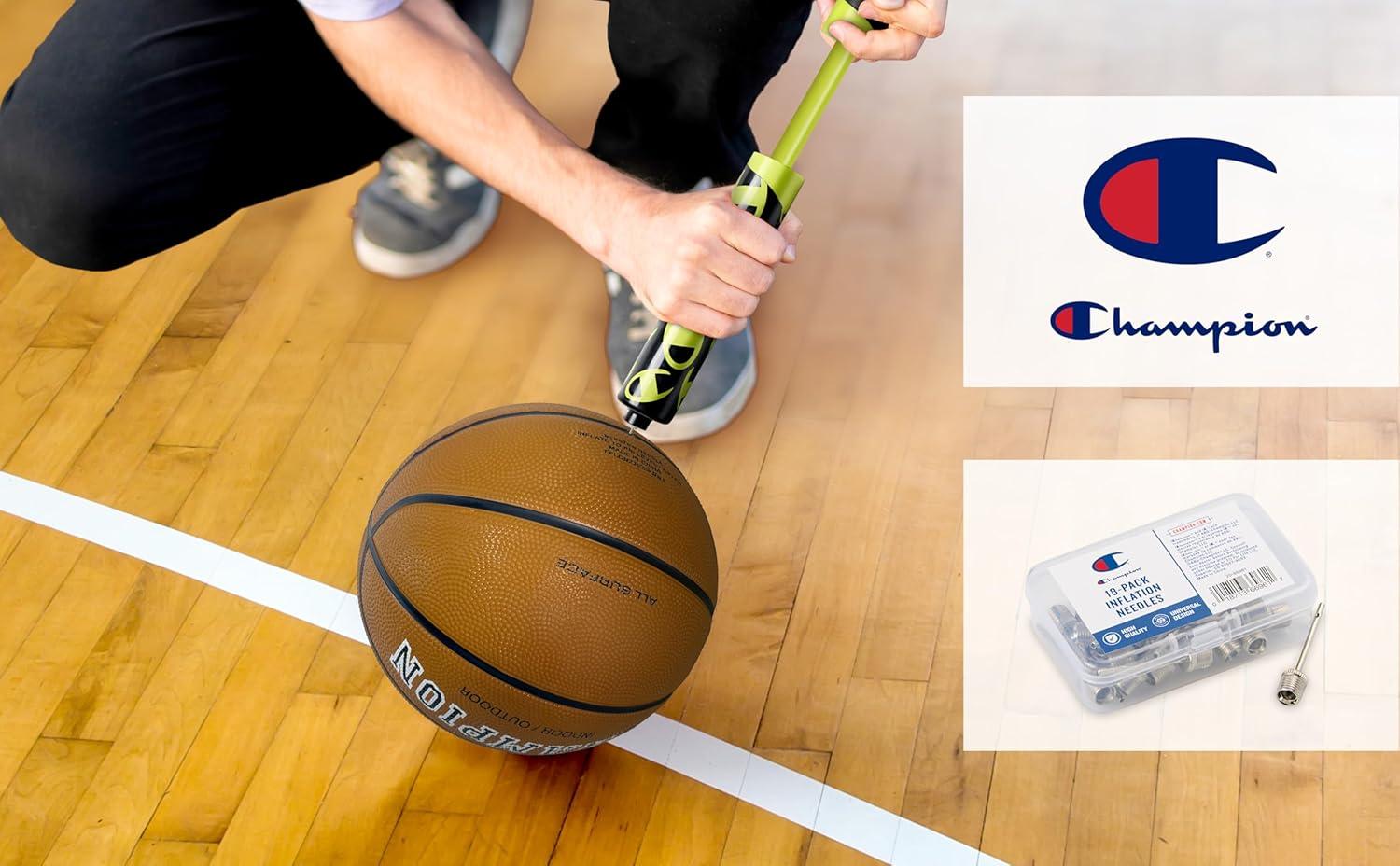 Champion Replacement Ball Pump with Metal Inflation Replacement Needles for Sports Balls with Compact Case, Compatible with Most Pumps for Basketball, Soccer, Football, Volleyball & Yoga Balls(Metallic)